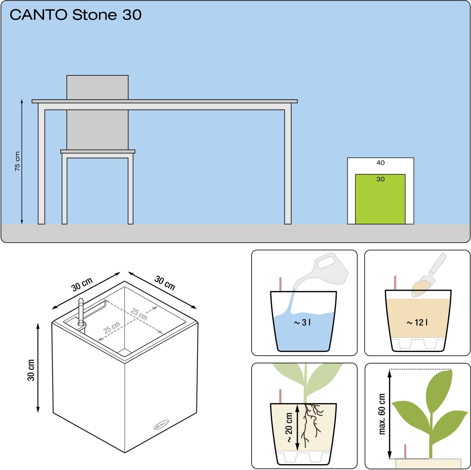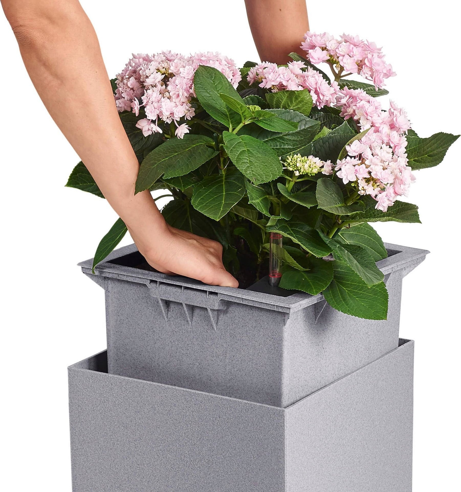 De set bestaat uit de plantenbak, een planteninzet en een bewateringsset. Dankzij dezelfde afmetingen kan de CANTO Stone planteninzet gemakkelijk worden uitgewisseld tussen de twee modellen.