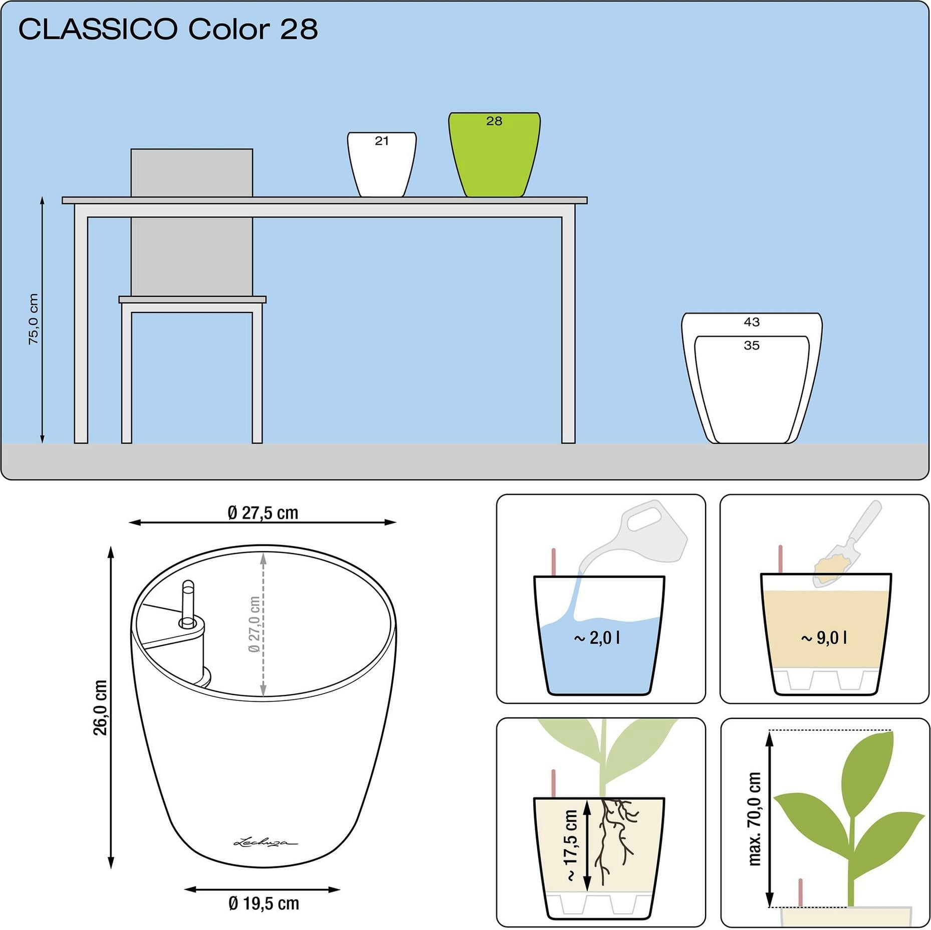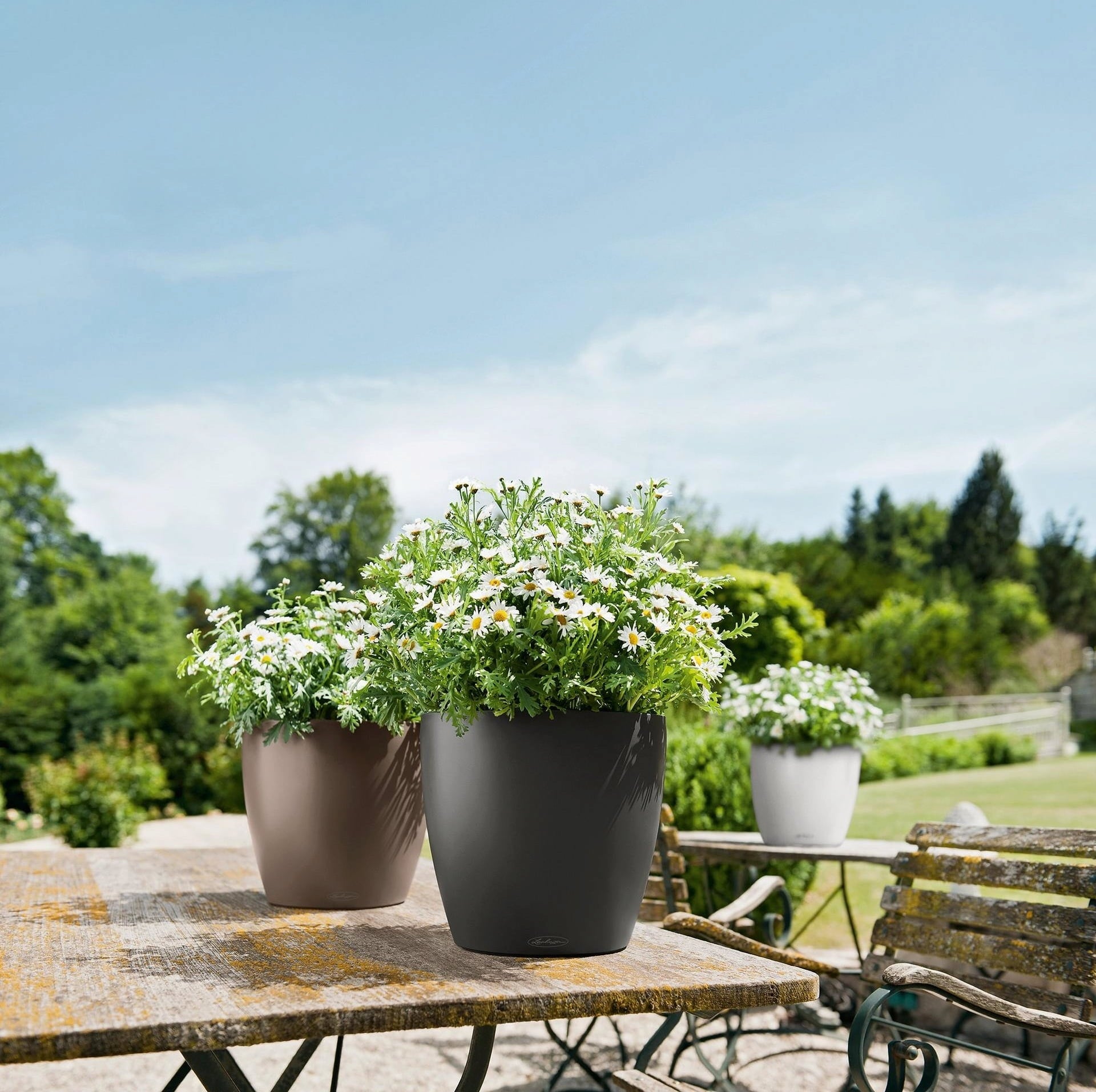 De CLASSICO Color 28 plantenbak van Lechuza zet jouw planten zowel binnen als buiten in een bijzonder mooi licht. Het tijdloze ontwerp past in elke ruimte - of het nu in de woon- en eetkamer is of op het terras en balkon.