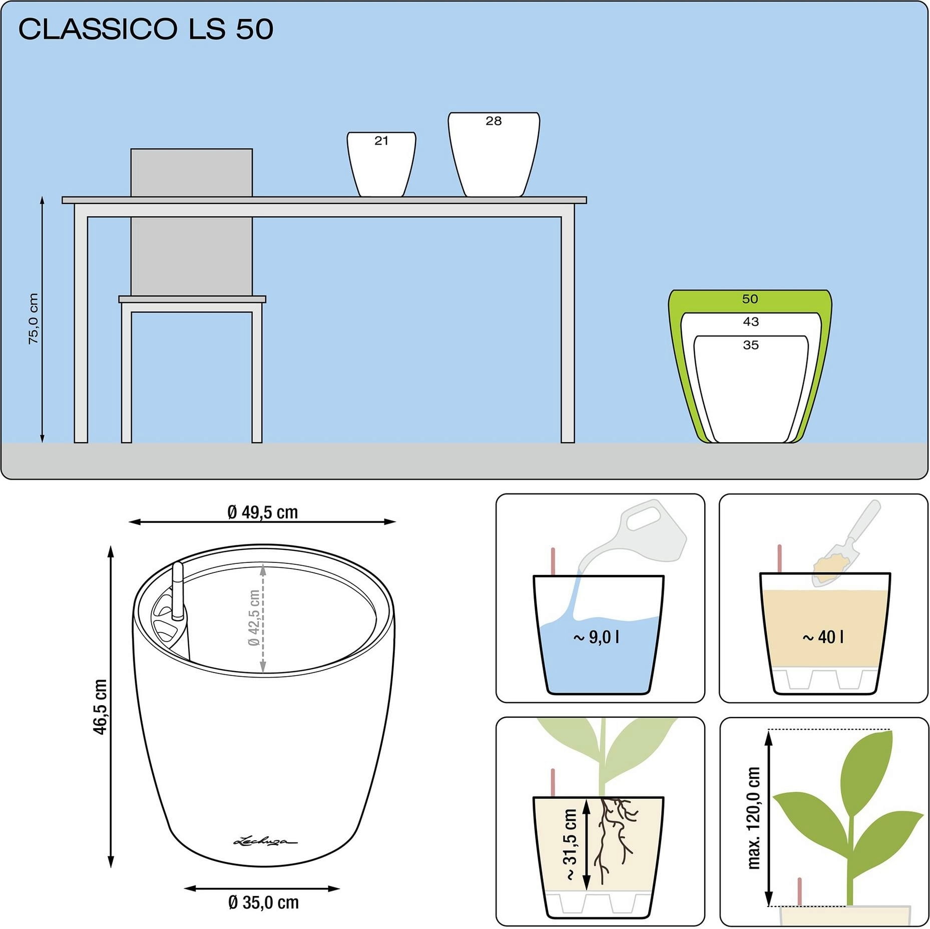 Deze hoogwaardige CLASSICO LS 50 plantenbak van Lechuza is gemaakt van onbreekbaar, UV-bestendig polypropyleen. Dankzij de klassieke vorm is de pot geschikt voor elke woonruimte. Dankzij het gepatenteerde linersysteem is de beplanting eenvoudig te verwisselen.