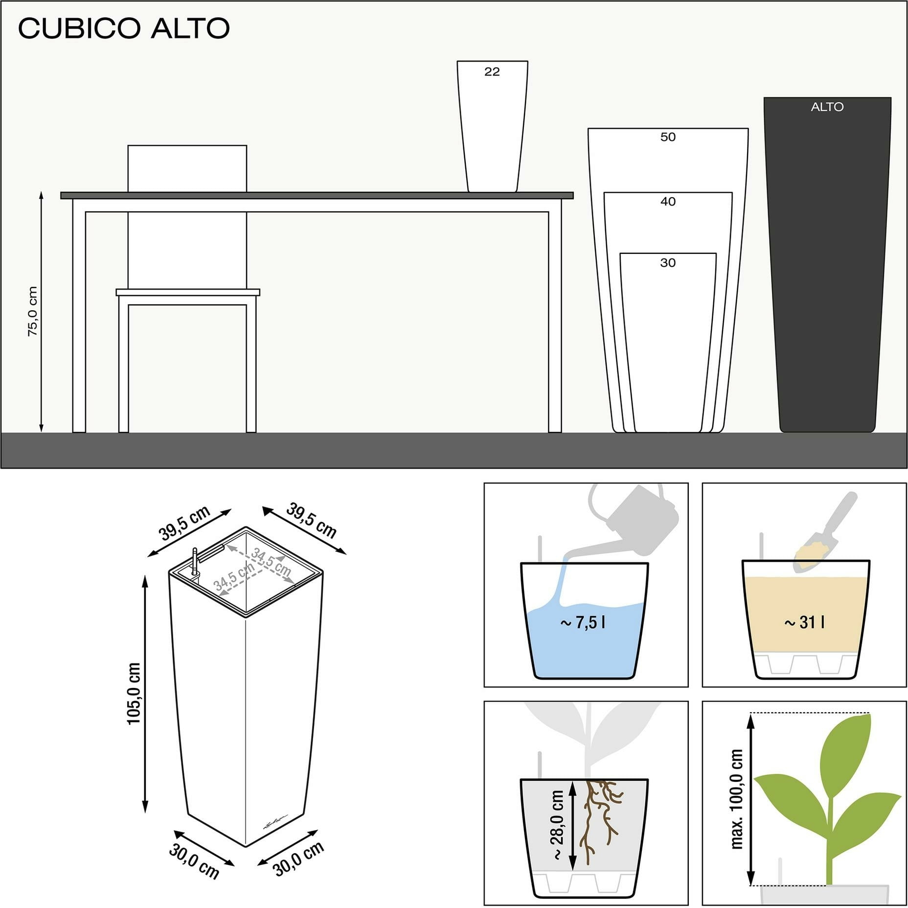 De "grote broer" van de klassieke Cubico plantenbak van Lechuza maakt niet alleen indruk met zijn elegante design, maar ook met zijn slimme innerlijke werking. De uitneembare binnenpot inclusief het gepatenteerde Lechuza irrigatiesysteem maakt het mogelijk om de beplanting snel en eenvoudig te verwisselen. Door zijn hoogte van 105 cm is hij ideaal voor grote, hoge ruimtes en kan hij prachtig worden gecombineerd met andere plantenbakken uit de Cubico-collectie.