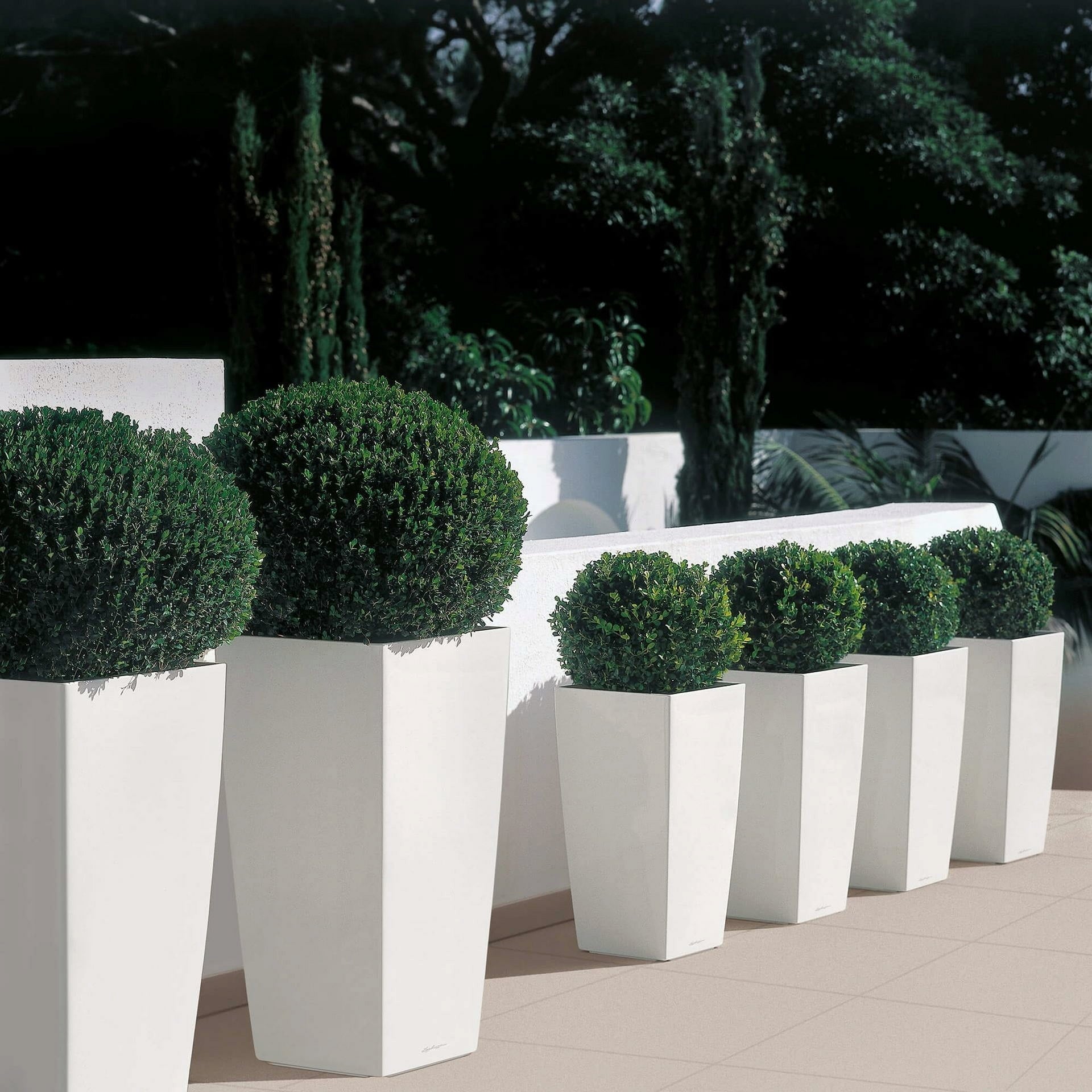 De stijlvolle plantenbak in elegante zuilvorm wordt geleverd inclusief planteninzet met intrekbare handgrepen en bewateringsset. Daardoor kan de beplanting eenvoudig en ongecompliceerd worden veranderd.