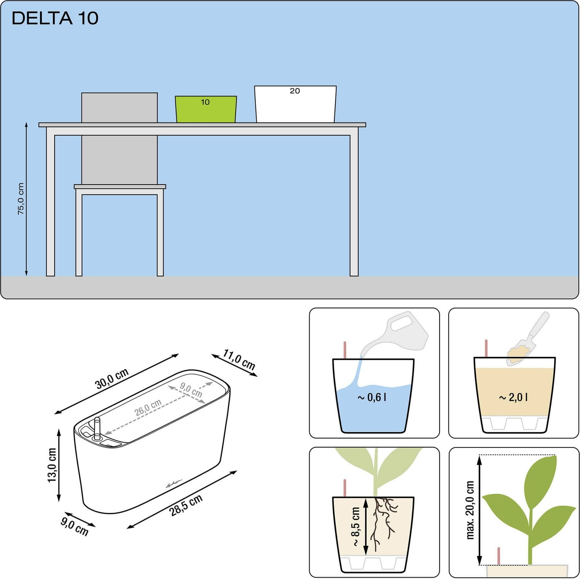 De Delta 10 plantenbak van Lechuza creëert de kleine wonderen van diversiteit. Door hun vorm en grootte zijn ze perfect voor vensterbanken en smalle dressoirs, maar ze zullen ook indruk maken als tafeldecoratie.