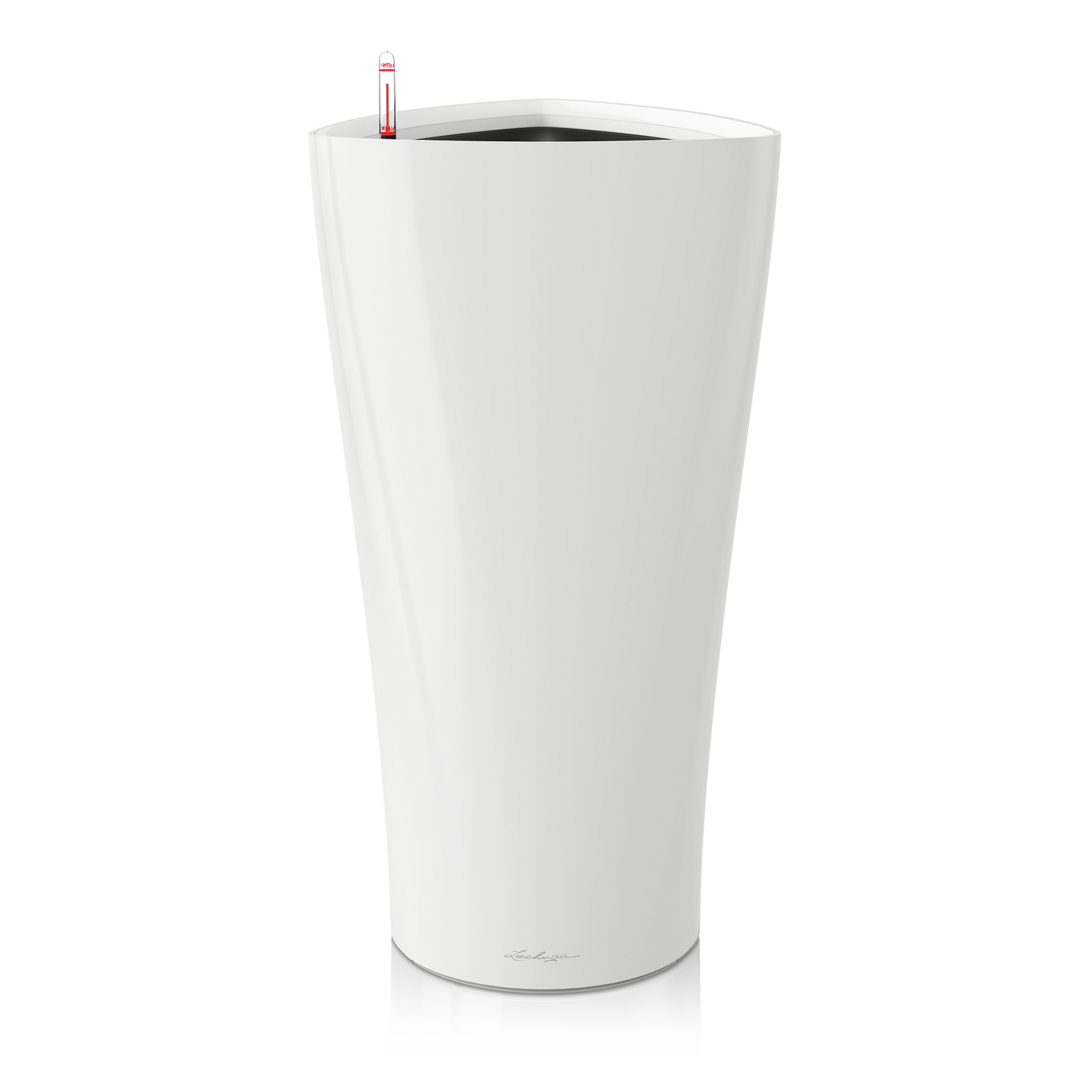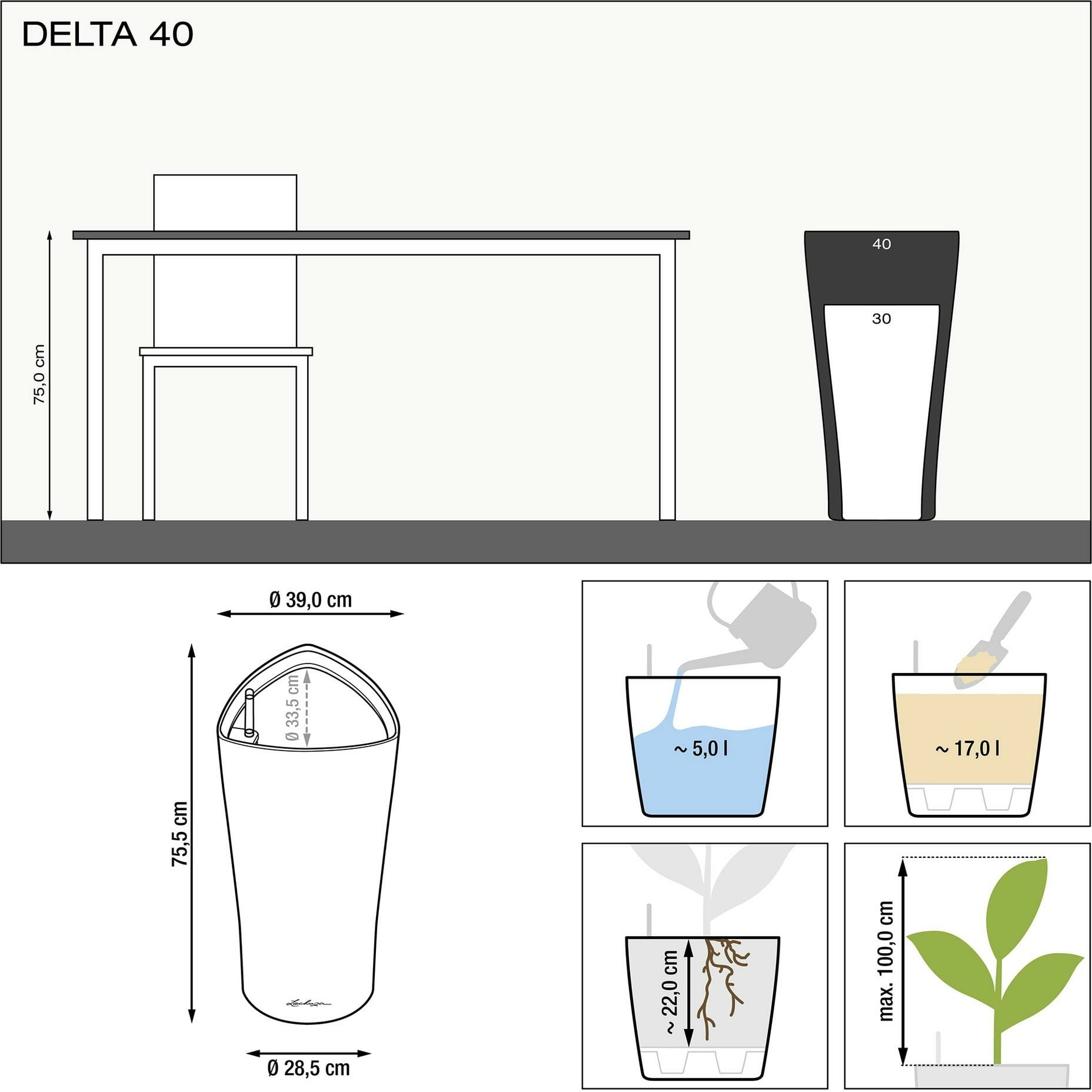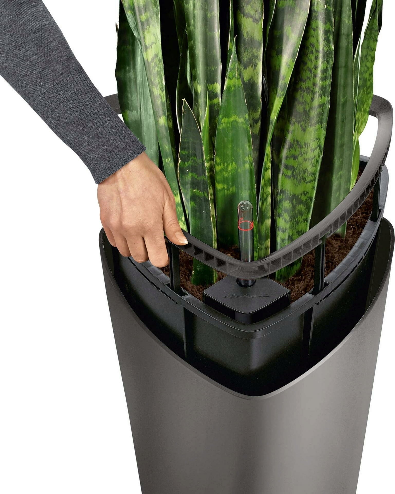 De stijlvolle DELTA-plantenbakken in aantrekkelijke zuilvorm overtuigen niet alleen door hun gebogen driehoekige design en edele hoogglans oppervlakken, maar ook door hun slimme binnenwerk. Het praktische planteninzetstuk verdwijnt bijna onzichtbaar dankzij het intrekbare, in de kleur van de pot gelakte greepframe. Het gepatenteerde systeem maakt ook het verwisselen van de planten kinderspel.