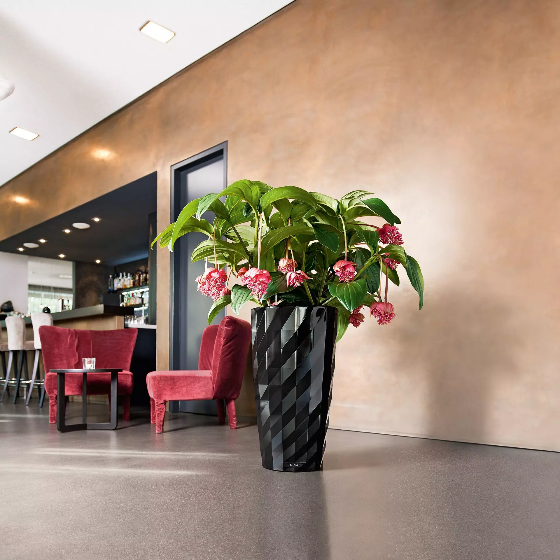 De buitengewone Diamant Premium plantenbak maakt niet alleen indruk met zijn elegante ontwerp, dat doet denken aan geslepen diamanten, maar ook met zijn slimme innerlijke werking. De uitneembare planteninzet, inclusief het gepatenteerde Lechuza bewateringssysteem, maakt het verwisselen van de planten snel en eenvoudig.