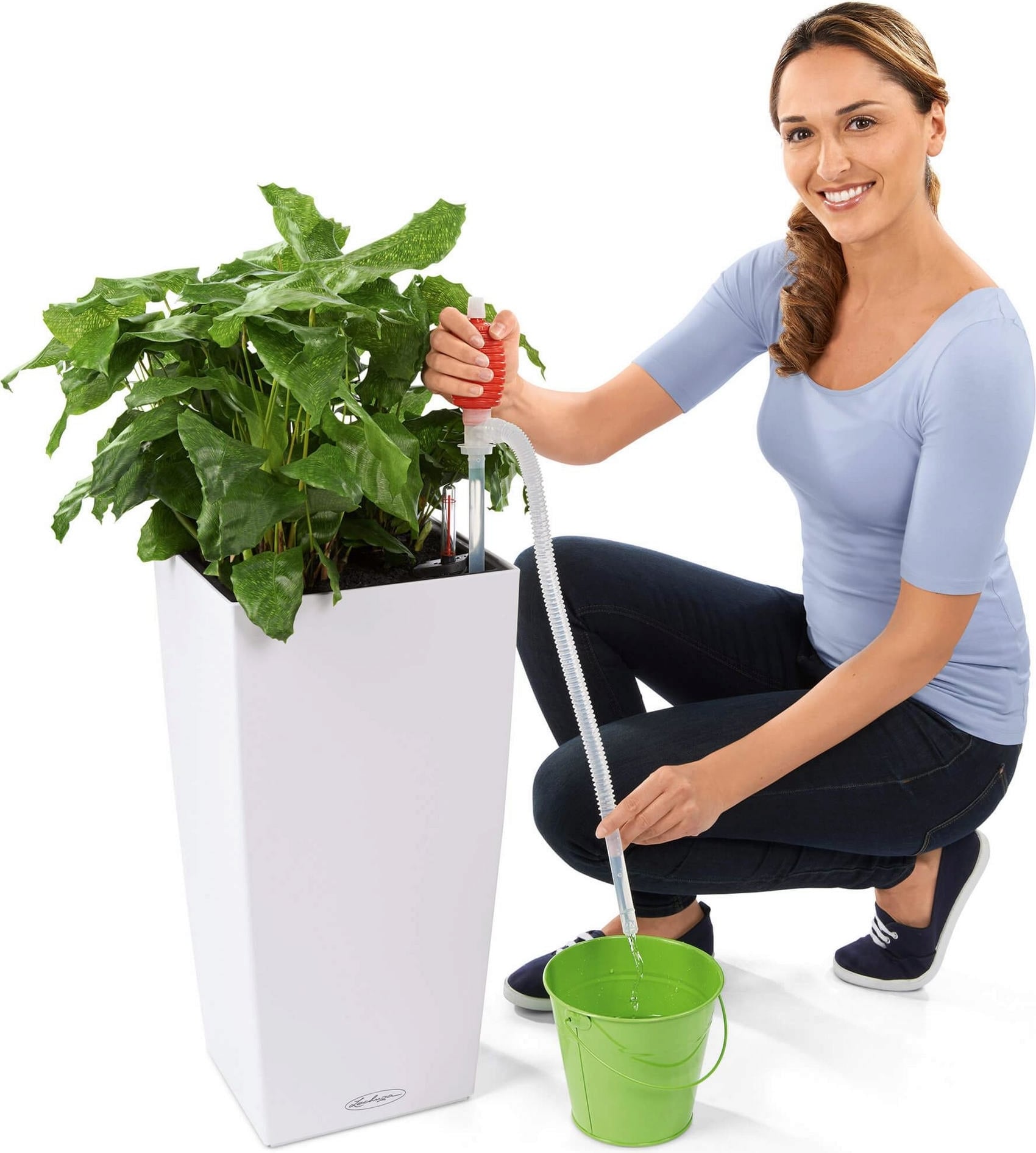 De handpomp is het ideale hulpmiddel om het waterreservoir gemakkelijk leeg te pompen. Als je te veel water hebt gegeven, kun je het gebruiken om het overtollige water moeiteloos uit het waterreservoir van je plantenbak te pompen.
