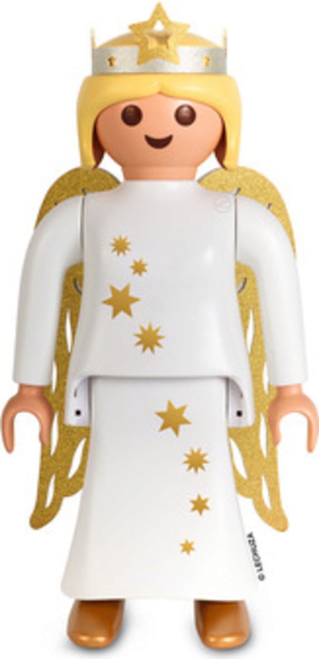Deze 60 cm grote engelfiguur maakt indruk met verfijnde goudversieringen en vormt zo een elegante blikvanger in elke ruimte. De vleugels en kroon zijn dankzij klittenband eenvoudig afneembaar, wat flexibele decoratiemogelijkheden biedt – helemaal volgens jouw stijl. De figuur is gemaakt van stevig, onbreekbaar kunststof en is 100% recyclebaar.