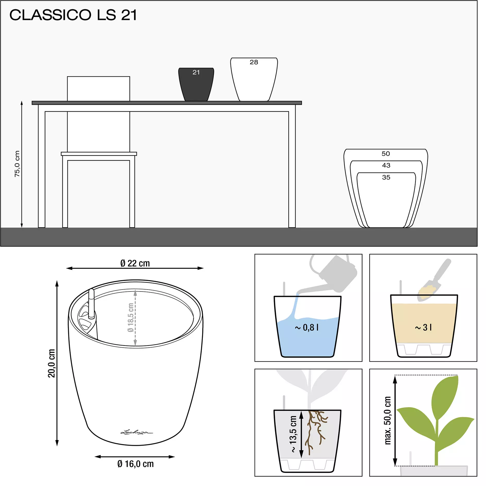 De populaire plantenbak “Classico Color” van Lechuza is nu ook verkrijgbaar met een vervangbare planteninzet voor nog meer gemak bij het verplanten. De elegante vorm, natuurlijke kleuren en de gebruikelijke hoogwaardige Lechuza-kwaliteit maken de plantenbakken uit de serie "Classico" tot absolute lievelingsstukken die zowel qua design als kwaliteit overtuigen.