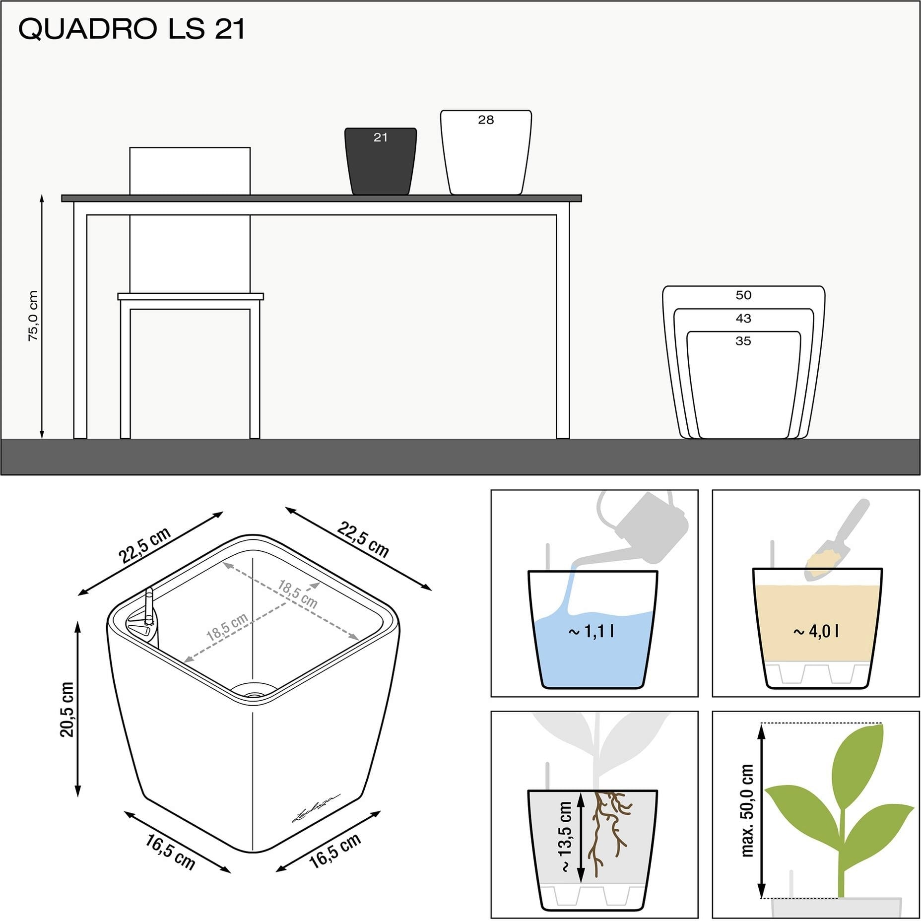 Lechuza Plantenbak QUADRO Premium LS 21, Wit hoogglans