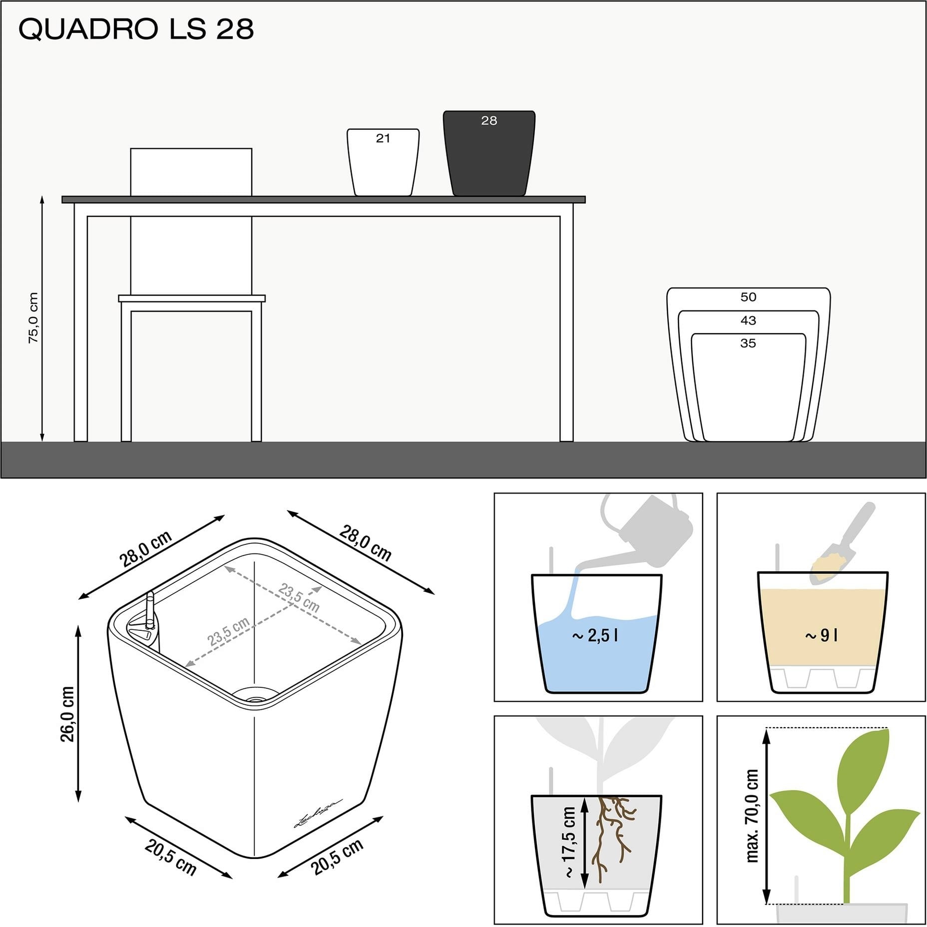 Lechuza Plantenbak QUADRO Premium LS 28, Wit hoogglans