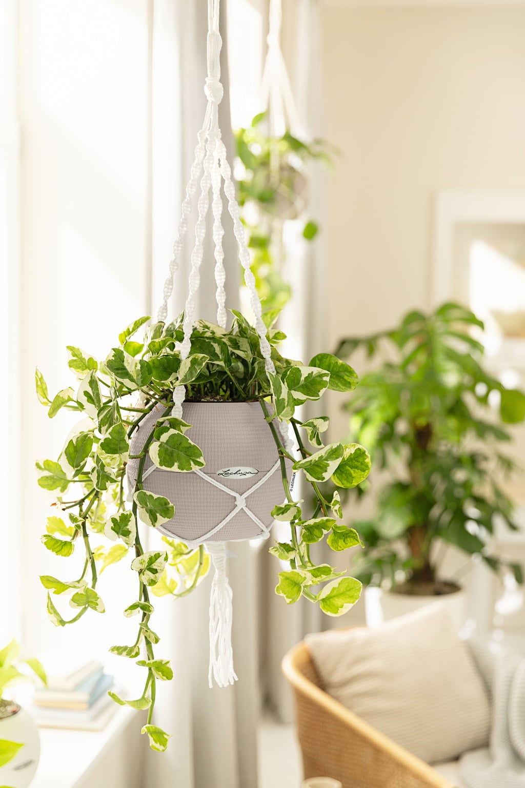 Leveringsomvang: Puro Color 20 plantenbak + macramé "Boho 90 wit"
