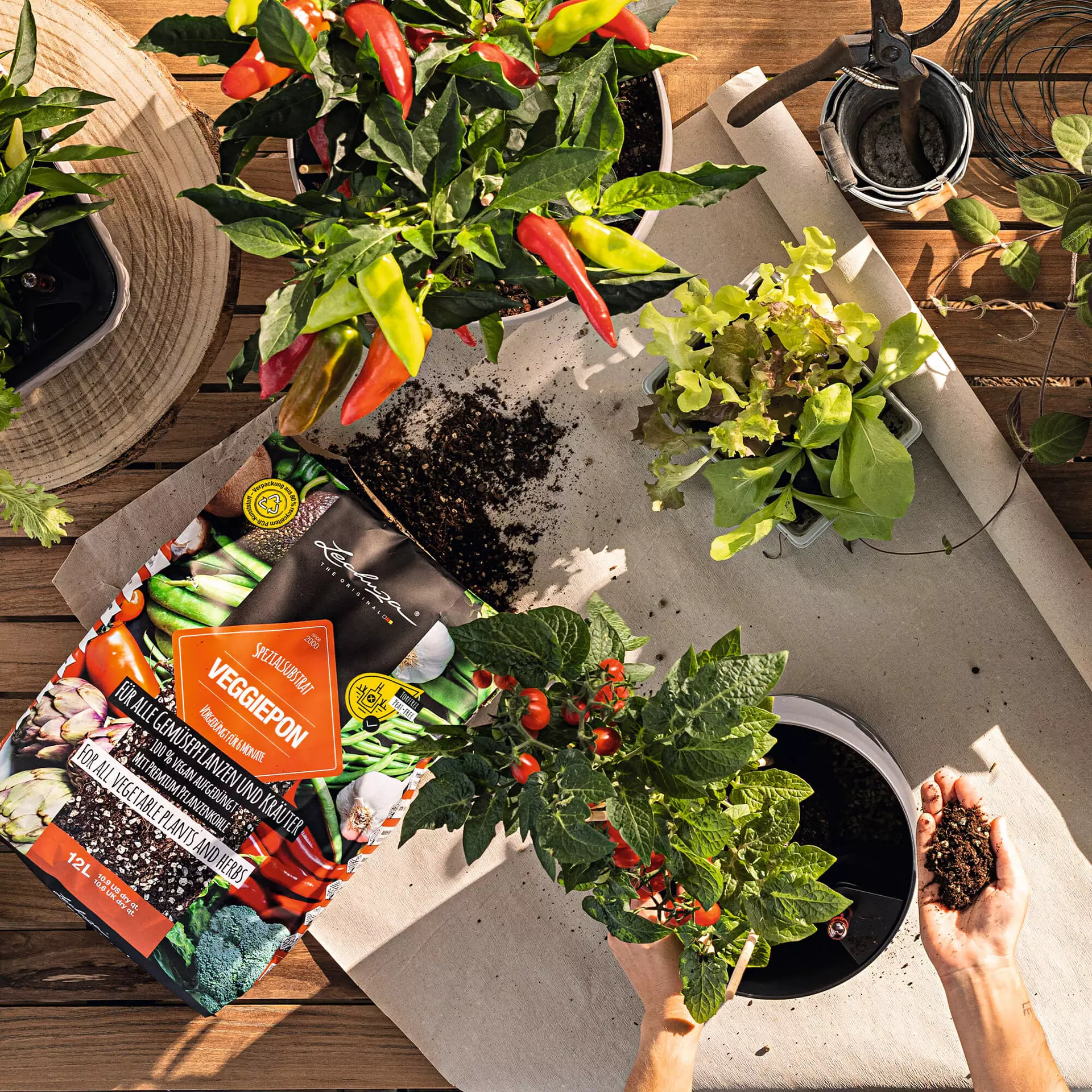 De voedingsrijke Veggie-Pon is verrijkt met volledig veganistische meststoffen en hoogwaardige plantaardige houtskool voor het beste resultaat.