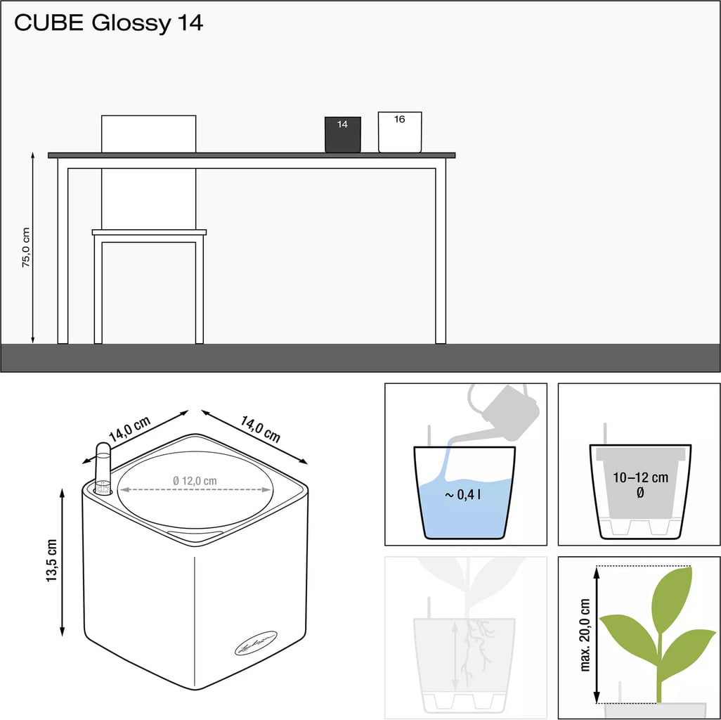 Lechuza Tafelpot CUBE Glossy CAT 14, Wit hoogglans