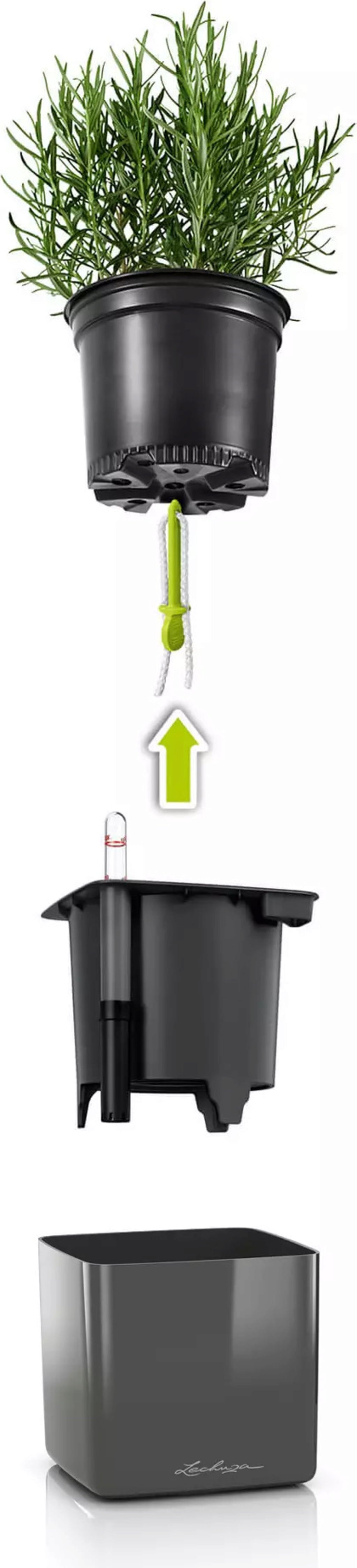 Om ervoor te zorgen dat de verzorging van de planten niet te veel tijd in beslag neemt, zorgt het Lechuza-irrigatiesysteem voor de verzorging van de plant. De planten kunnen eenvoudig samen met de kweekpot in de bakken uit de Glossy collectie worden geplaatst, zonder dat er tijdrovend verpotten nodig is. Een stokje dat van onderaf in de kweekpot wordt gestoken, transporteert het vocht gelijkmatig naar de wortels. Met de waterniveau-indicator kun je zien wanneer het tijd is om weer water te geven.