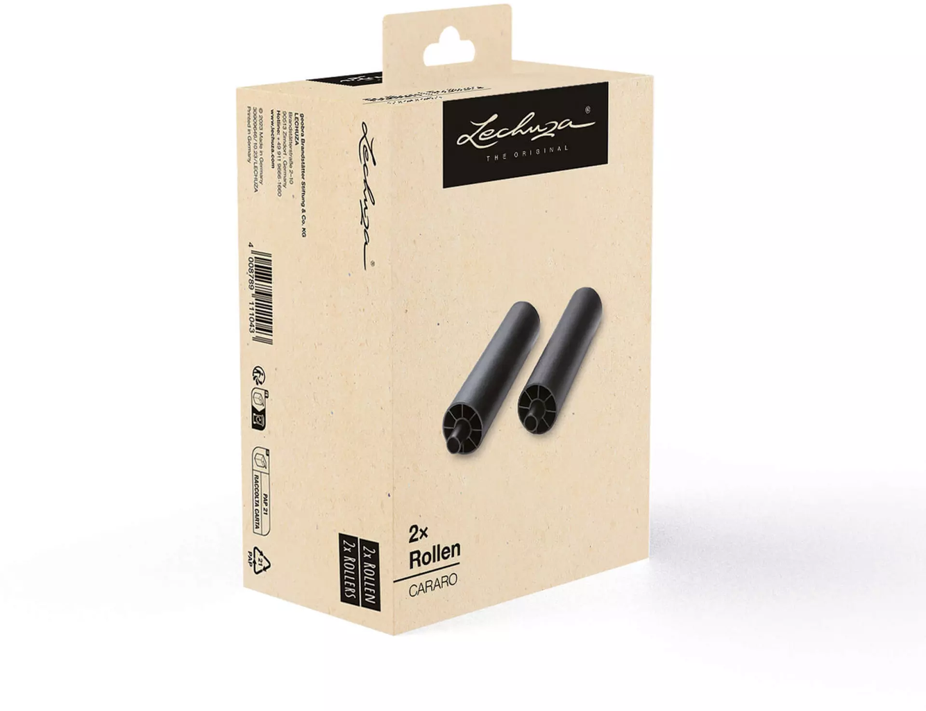 De praktische wielen voor de CARARO plantenbak van Lechuza kunnen onzichtbaar onder de bodem van de container worden gemonteerd en maken de plantenbak mobiel. Dit maakt het opnieuw inrichten van kamers bijzonder comfortabel en eenvoudig. Bij de levering zijn 2 rollen inbegrepen, geschikt voor een CARARO container.