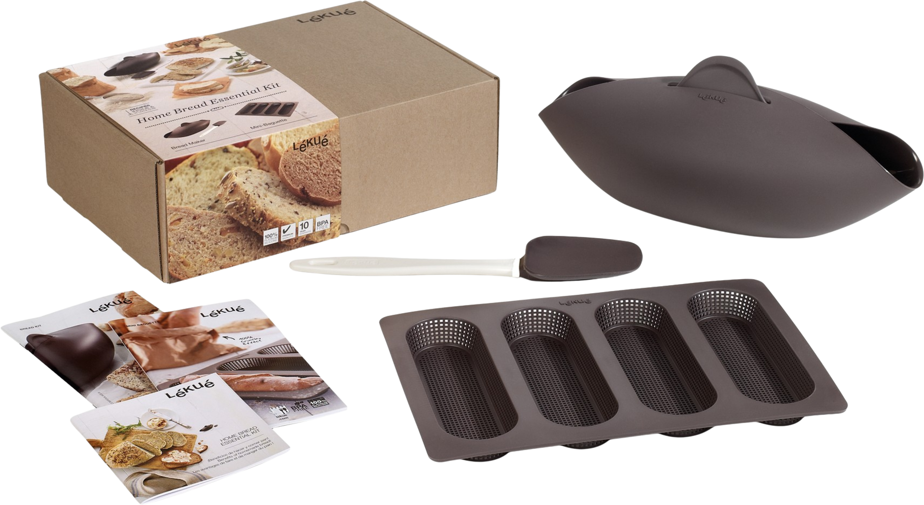 Met deze brood- en stokbroodbakset kun je gemakkelijk aan de slag in de wondere wereld van brood bakken! Het pronkstuk van de set is de ingenieuze siliconen broodbakvorm. Je kunt de ingrediënten voor je brood er direct in afwegen, het deeg kneden en vervolgens bakken in dezelfde bak. Dit betekent minder rommel in de keuken en meer tijd om van je brood te genieten. Het speciale ontwerp met zijopeningen zorgt voor een heerlijk knapperige korst, terwijl de gedeeltelijk gesloten kom stoom laat circuleren, waardoor je brood heerlijk vochtig blijft aan de binnenkant.