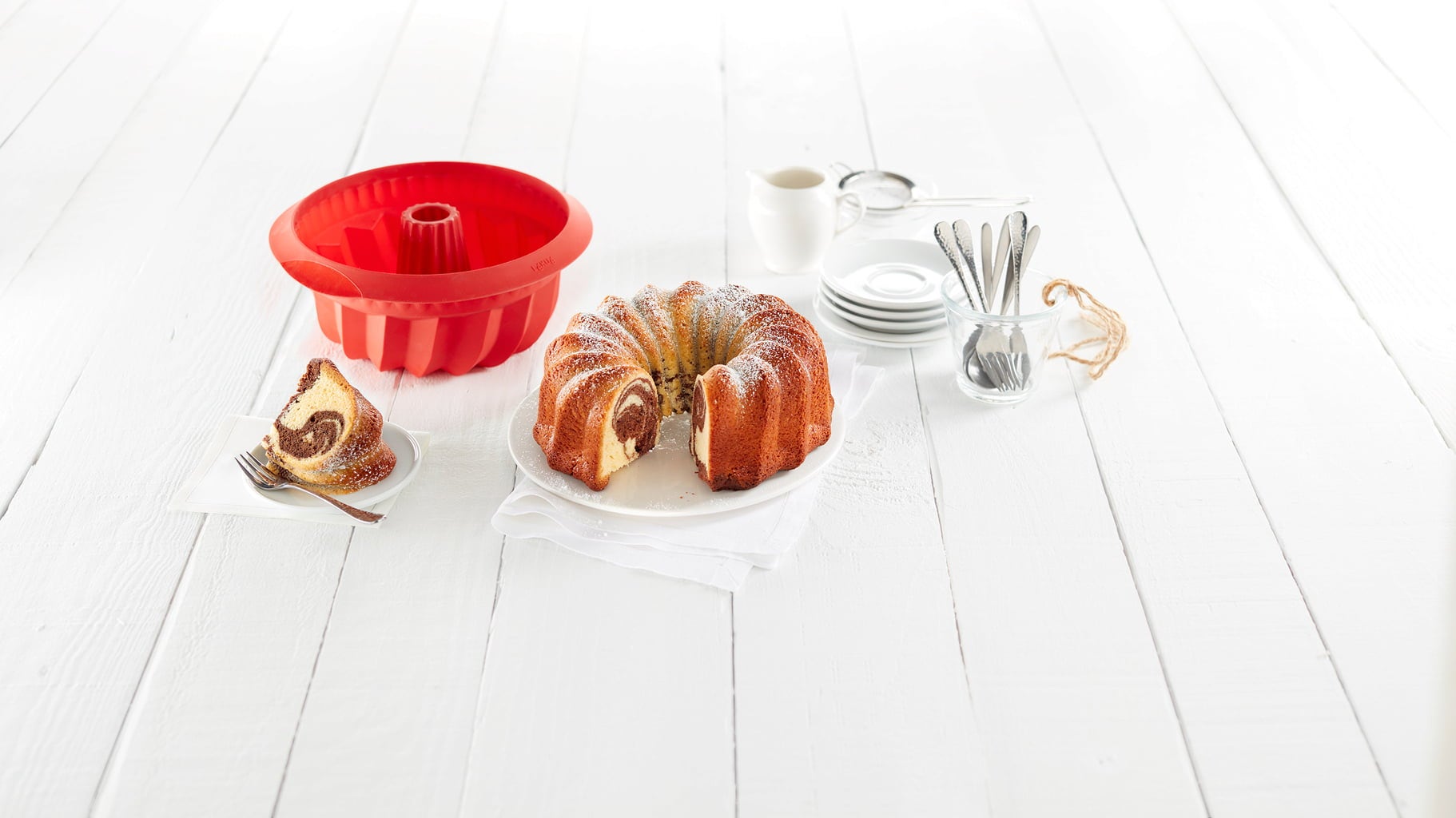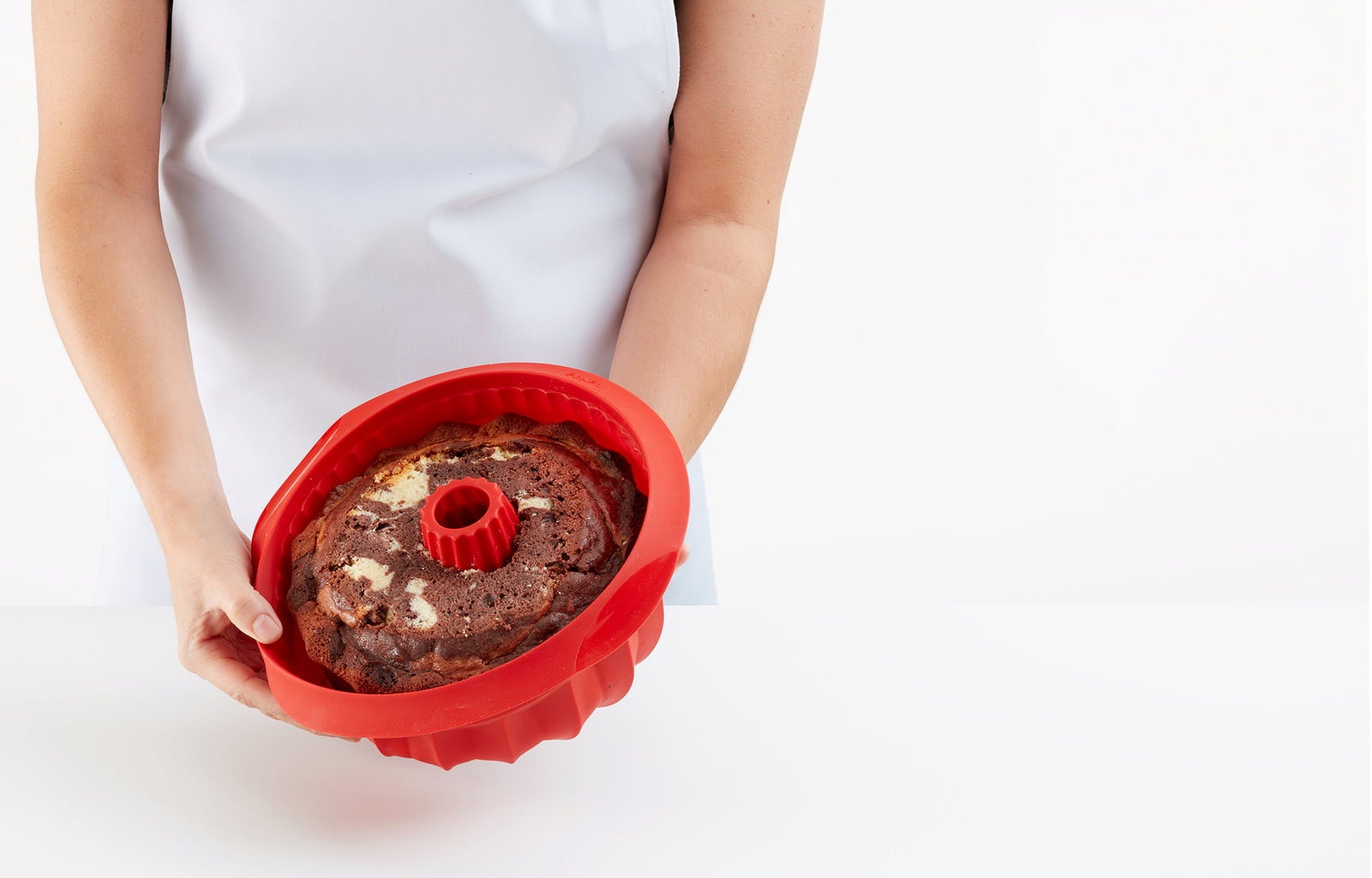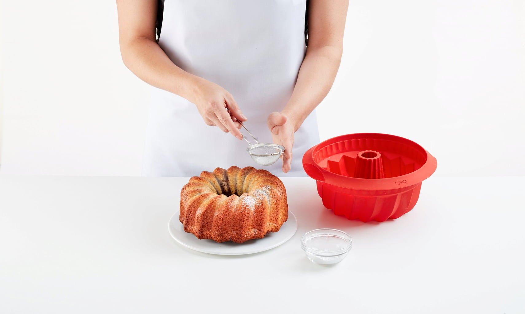 Met de diepe siliconen bundt cakevorm van Lékué met een diameter van 22 cm bak je deze bakklassieker met gemak en een indrukwekkend resultaat. Dankzij de hoogwaardige, flexibele siliconen en de uitstekende antiaanbakeigenschappen komt je cake na het bakken bijna vanzelf uit de vorm - voor een vlekkeloos resultaat zonder hinderlijk plakken of verkruimelen. De vorm is aangenaam licht en biedt met een royaal inhoudsvermogen van 2400 ml voldoende ruimte voor je favoriete recepten – of je nu een rijke chocoladetulband of een verfijnde, doordrenkte savarin wilt maken.