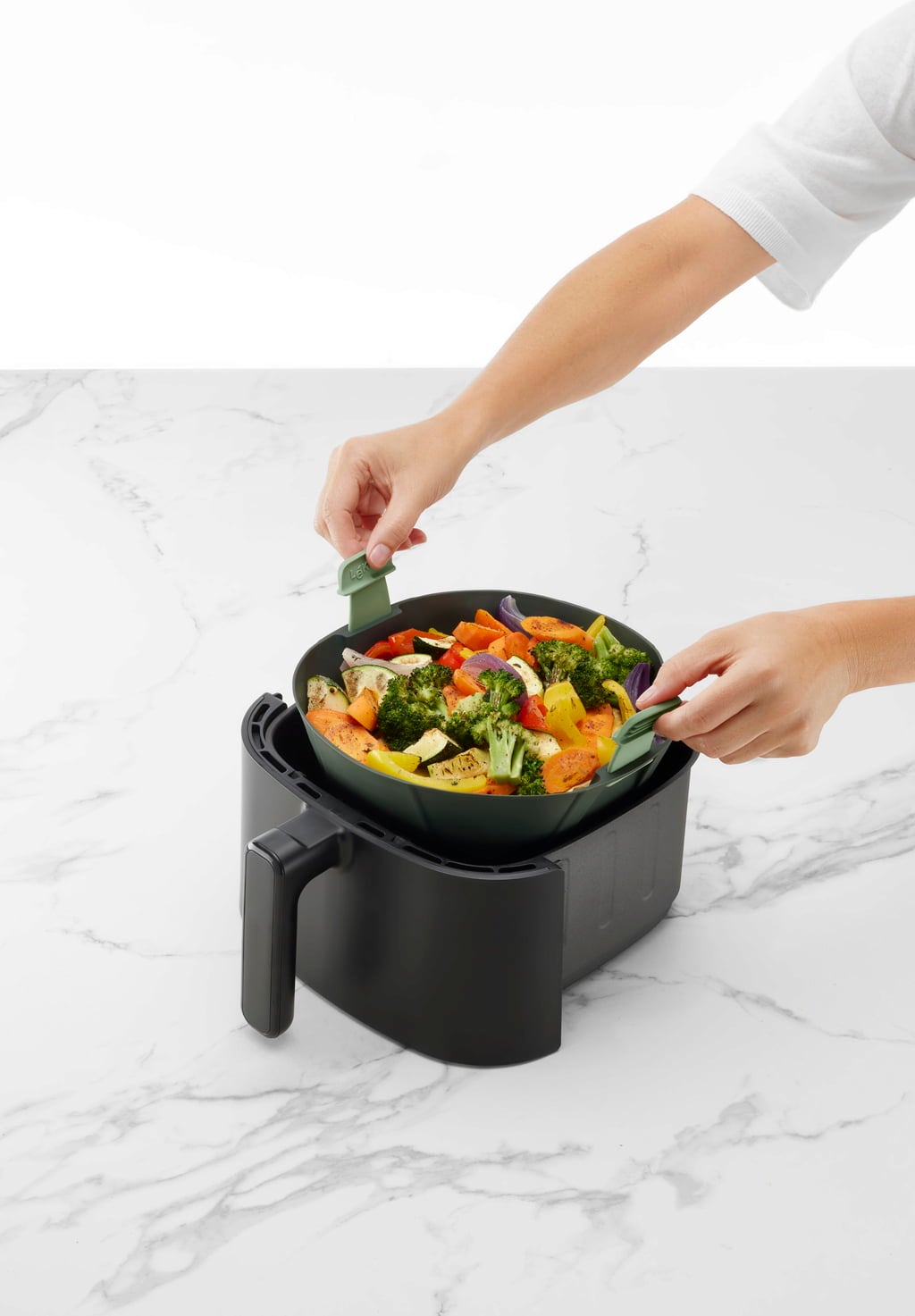 Gemaakt van 100% hoogwaardig platina-siliconen en uiteraard BPA-vrij, is deze mand een perfecte aanvulling op je heteluchtfriteuse!