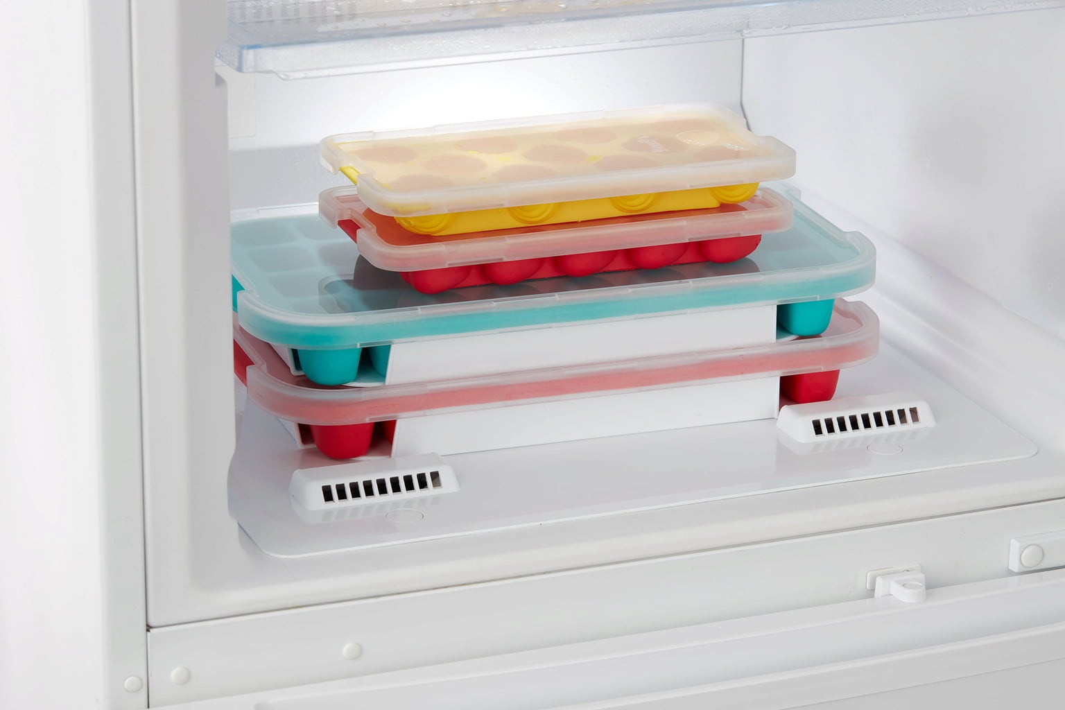 De meegeleverde deksel is een echte allrounder: het beschermt je ijsblokjes betrouwbaar tegen geurtjes uit de vriezer en maakt het mogelijk om meerdere vormen op elkaar te stapelen om ruimte te besparen. Dankzij de stevige onderkant kun je de vorm ook veilig vullen en in de vriezerlade plaatsen of vervoeren zonder dat hij omvalt.