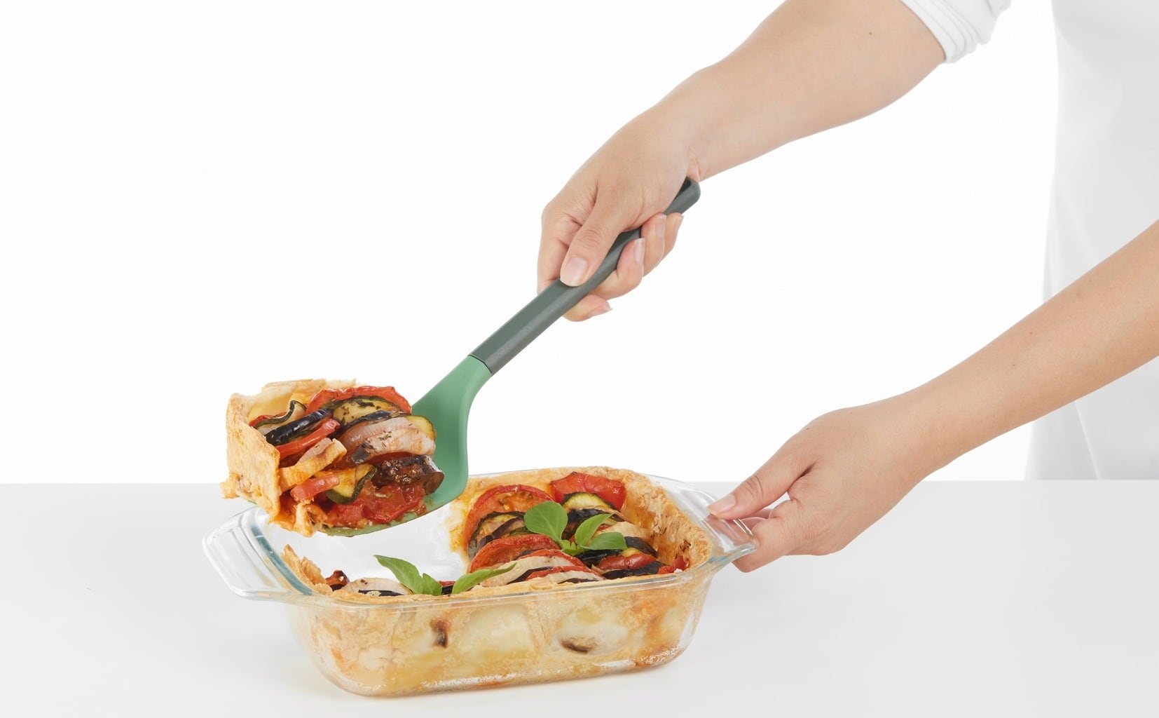De krasbestendige siliconen bakspatel van Lékué is een echte held voor je keuken! De grote, flexibele kop van hoogwaardig platina silicone glijdt soepel onder elk gerecht en beschermt op betrouwbare wijze delicate oppervlakken, terwijl het slimme ontwerp met dubbele hoek het makkelijker maakt om voedsel op te tillen.