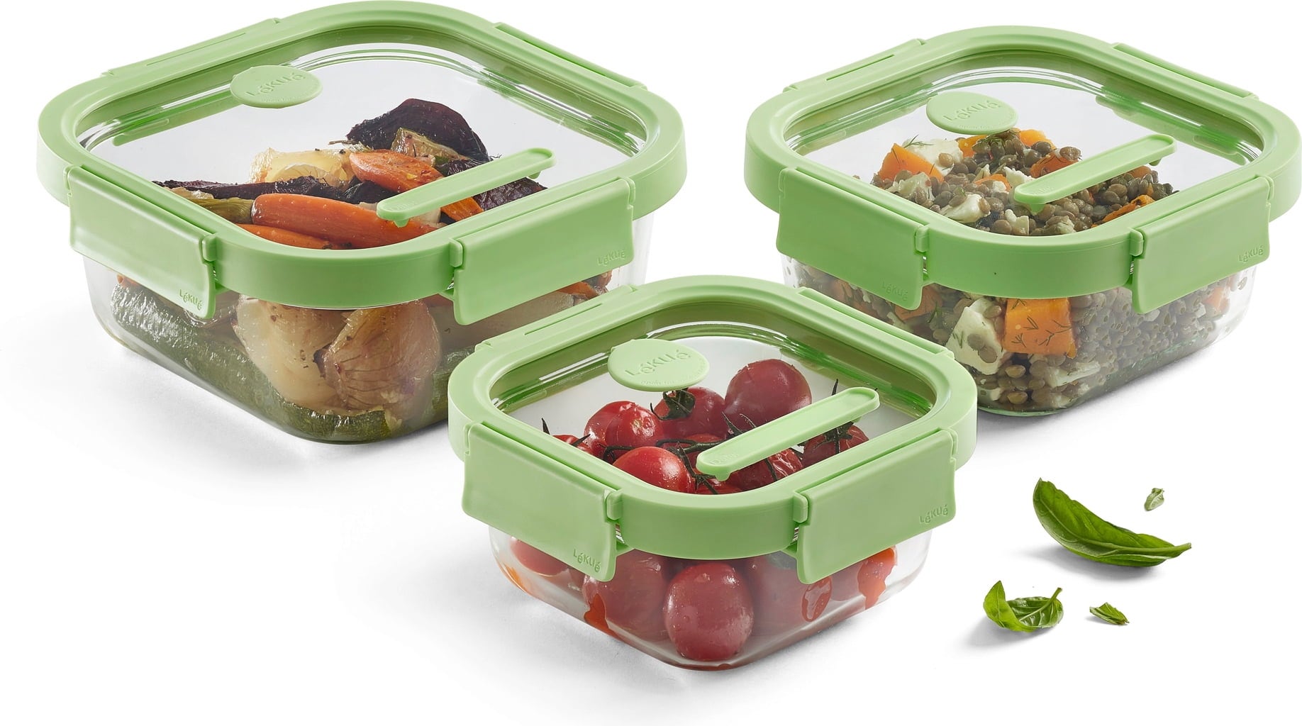 Samen met de bijpassende, hittebestendige glazen deksels zijn de potten 100% luchtdicht. Dus smaken blijven heerlijk bewaard en onaangename geurtjes of verkleuring krijgen hier geen kans. Dankzij een slim ventiel in de deksel kun je zelfs eten direct in de magnetron opwarmen! En zodat je altijd kunt bijhouden wanneer je iets hebt bewaard, heeft elk deksel een praktische datumaanduiding.