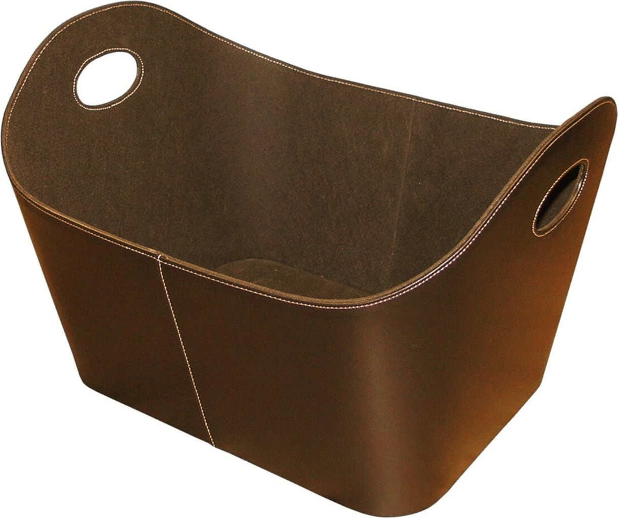 Deze elegante mand is een prachtig accessoire dat in elk huishouden op verschillende manieren kan worden gebruikt. Of het nu is om brandhout te vervoeren en mooi op te bergen of om speelgoed of andere schatten in op te bergen - deze mand scoort altijd en overal punten met zijn tijdloze lederlook, waardoor hij naadloos in elk interieur past.
