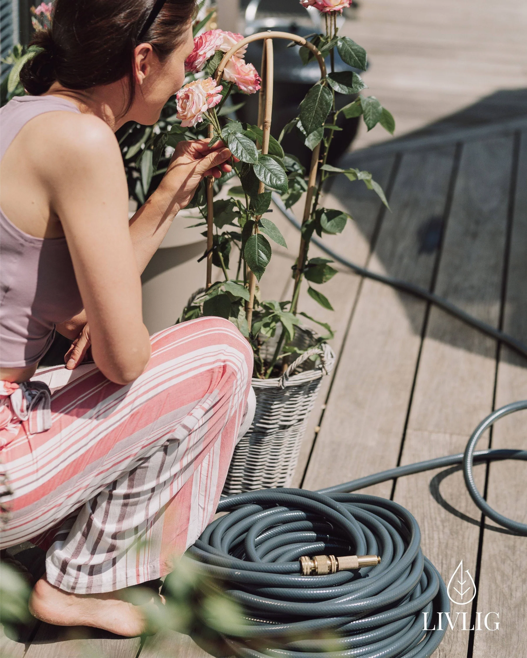 Is een tuinslang slechts een gewoon gebruiksartikel? Helemaal niet, zoals deze stijlvolle designtuinslang op indrukwekkende wijze laat zien. Dit unieke tuinaccessoire is een echte musthave voor iedereen wiens tuin een doordacht ontwerpconcept volgt en een weerspiegeling is van de eigen persoonlijkheid. Met zijn Scandinavische design in aangenaam zachte kleuren past hij harmonieus in stijlvolle tuinen en bewijst hij dat zelfs een tuinslang esthetisch kan zijn.