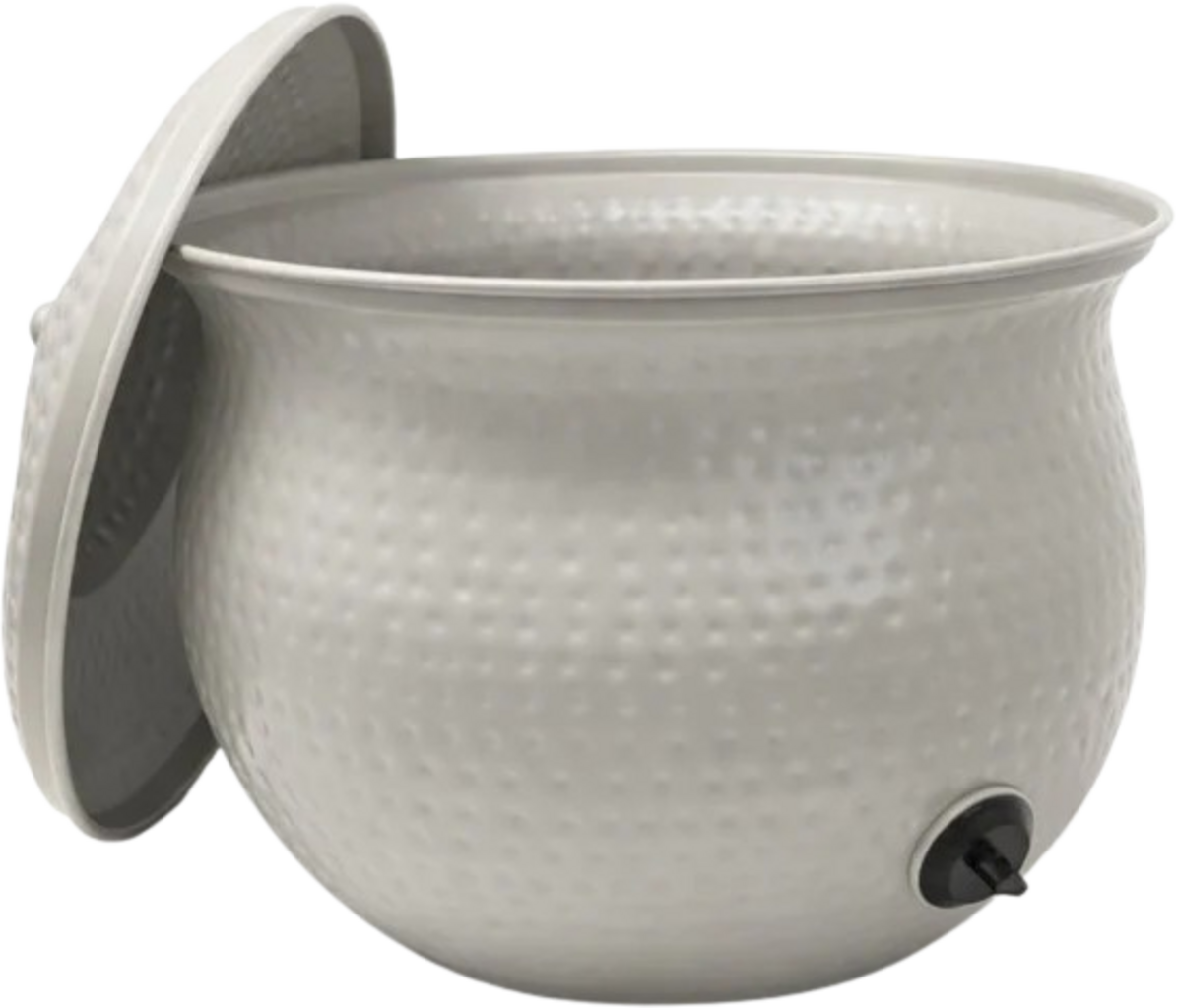 De LIVLIG gehamerde slangenpot is hét antwoord op rondslingerende tuinslangen. De gehamerde textuur geeft de pot een prachtige esthetiek en verandert iets basaals als een slangopbergsysteem in een absolute blikvanger op het terras, het balkon of in de tuin. De slangenpot biedt ruimte aan maximaal 20 m flexibele tuinslang. Dankzij het bijbehorende deksel is de inhoud betrouwbaar beschermd tegen alle weersinvloeden.