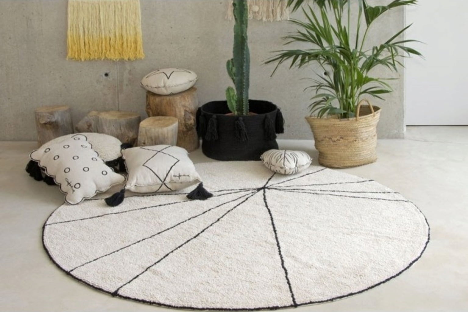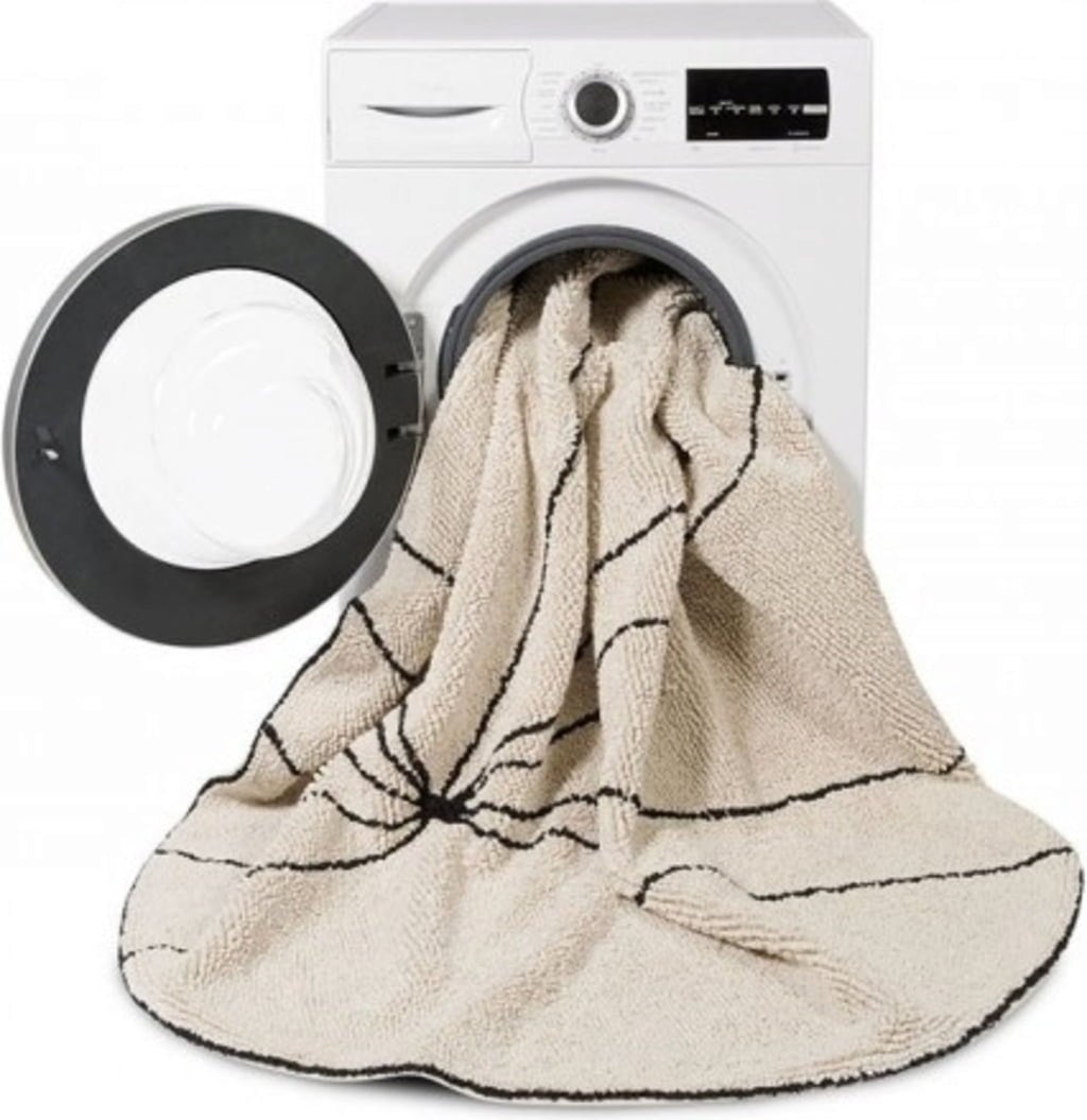 Lorena Canals Rond Katoenen Vloerkleed Trace, Natural, Black