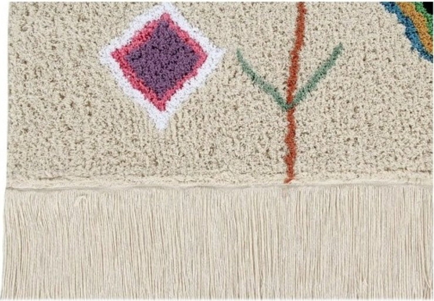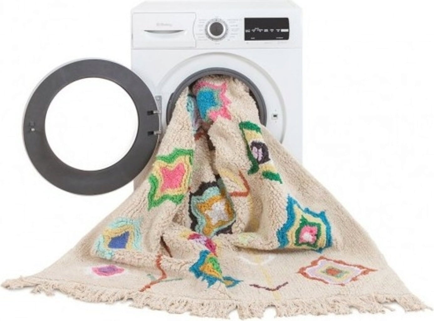 Met dit kleurrijke en rijkelijk met de hand geknoopte vloerkleed dompel je je huis onder in de magie van Marokko. De ingewikkelde afwerking en het unieke ontwerp maken dit tapijt tot een heel bijzonder woonaccessoire met een ongeëvenaarde charme.