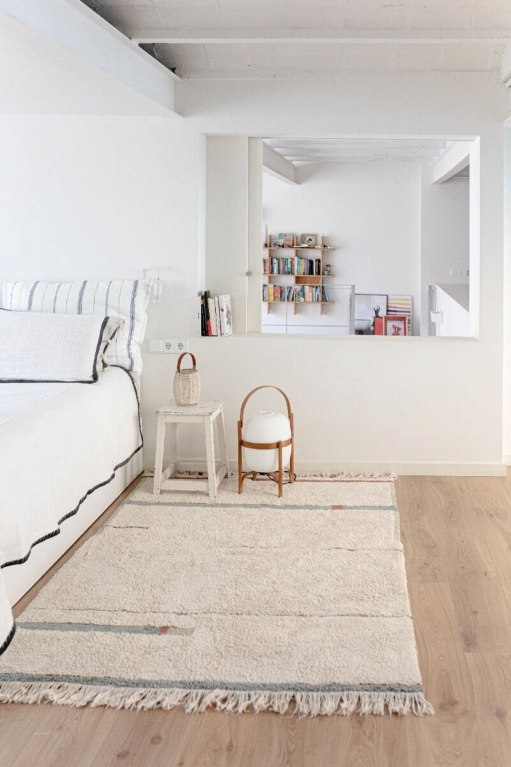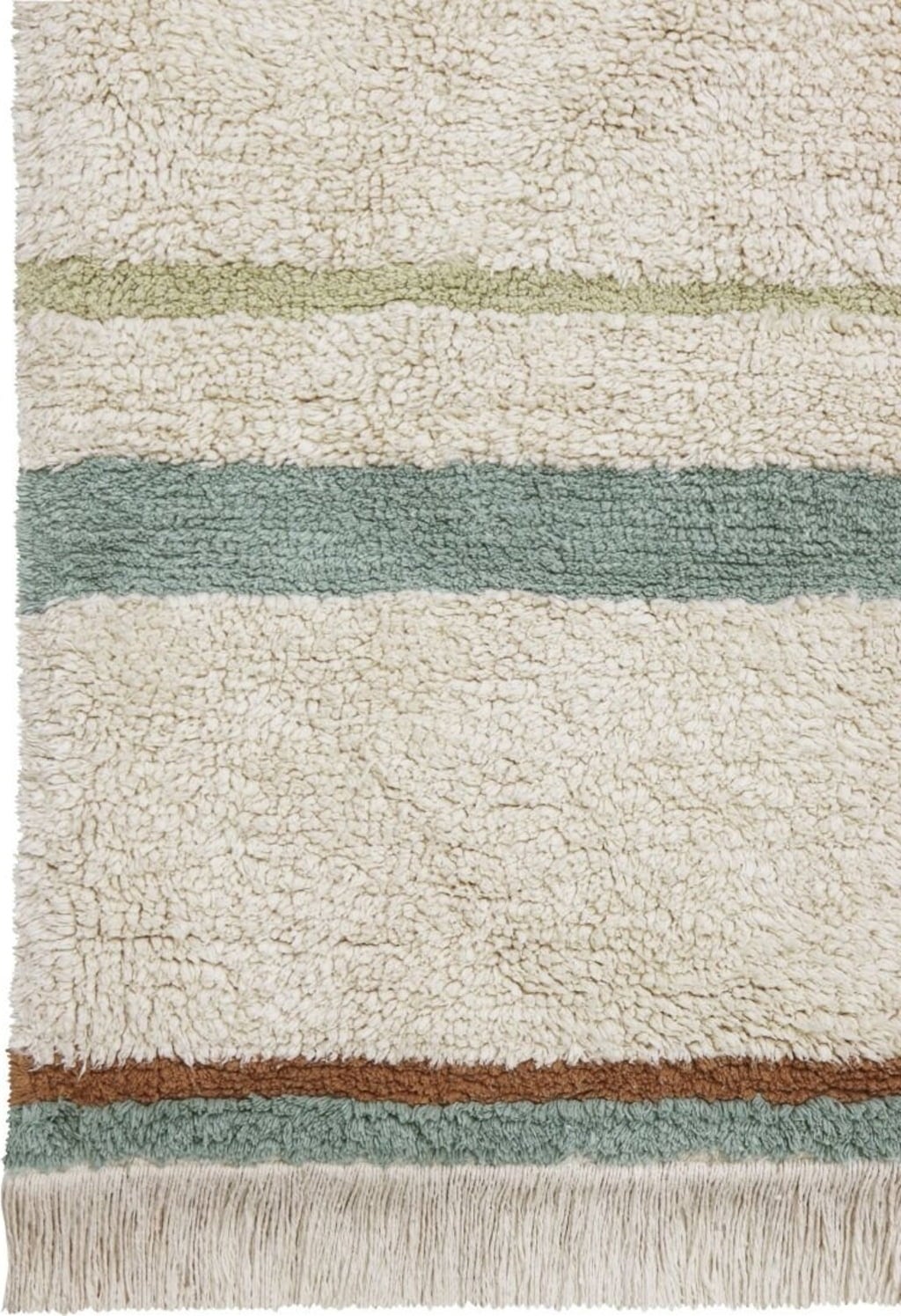 Het vloerkleed is afgewerkt met franjes die het rustige ontwerp van het tapijt perfect afronden. Het is ideaal voor woon- en slaapkamers of als zacht kleuraccent in kinder- en tienerkamers, waar het een aangename, behaaglijke sfeer creëert.