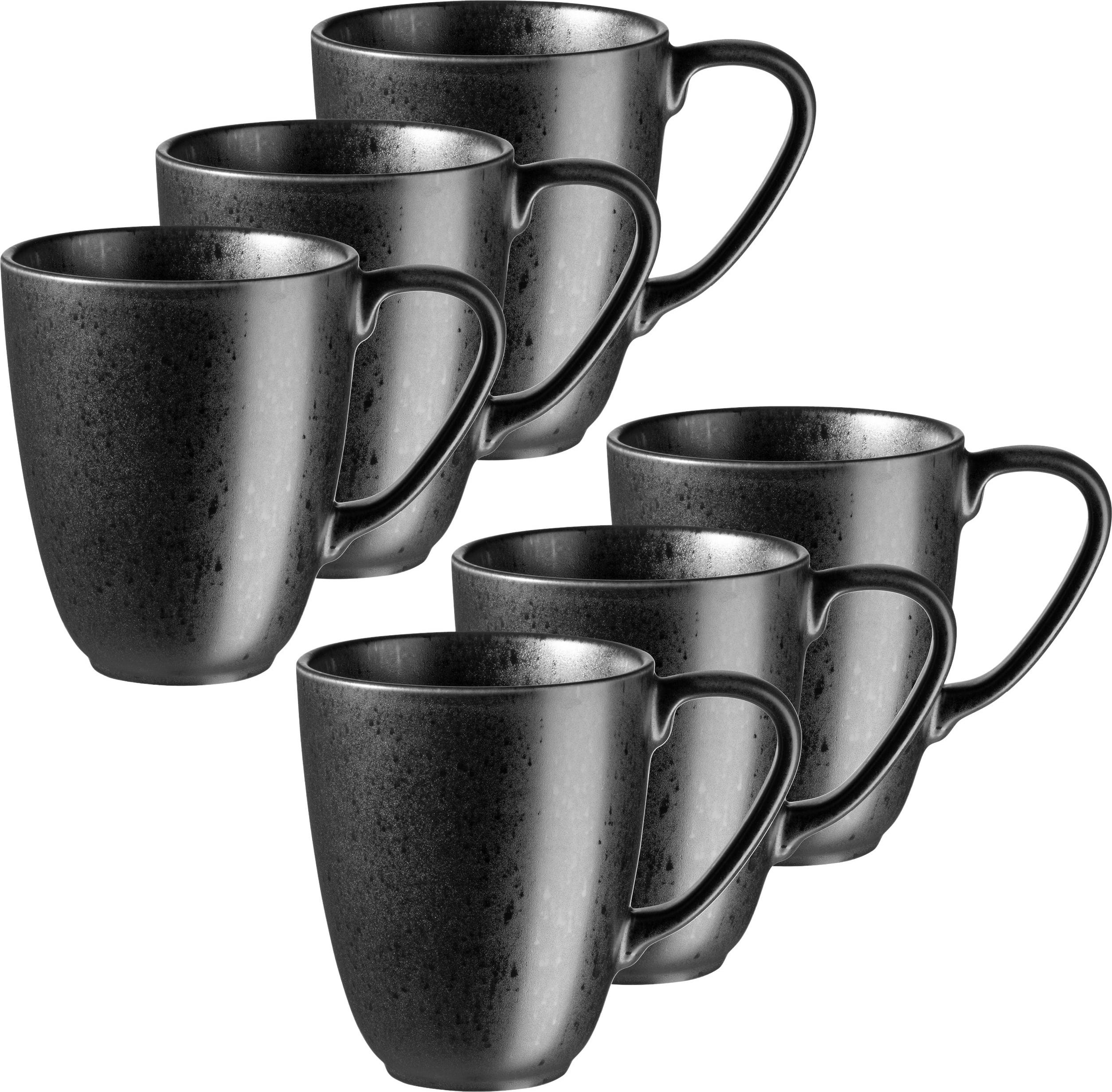 Geniet van je koffie uit deze zes stijlvolle bekers die overtuigen door hun moderne design. De combinatie van mat, donker glazuur en subtiel glanzende zwarte spikkels maakt elk item uit de Essentials-serie van Mäser tot een optisch hoogtepunt op je ontbijttafel.