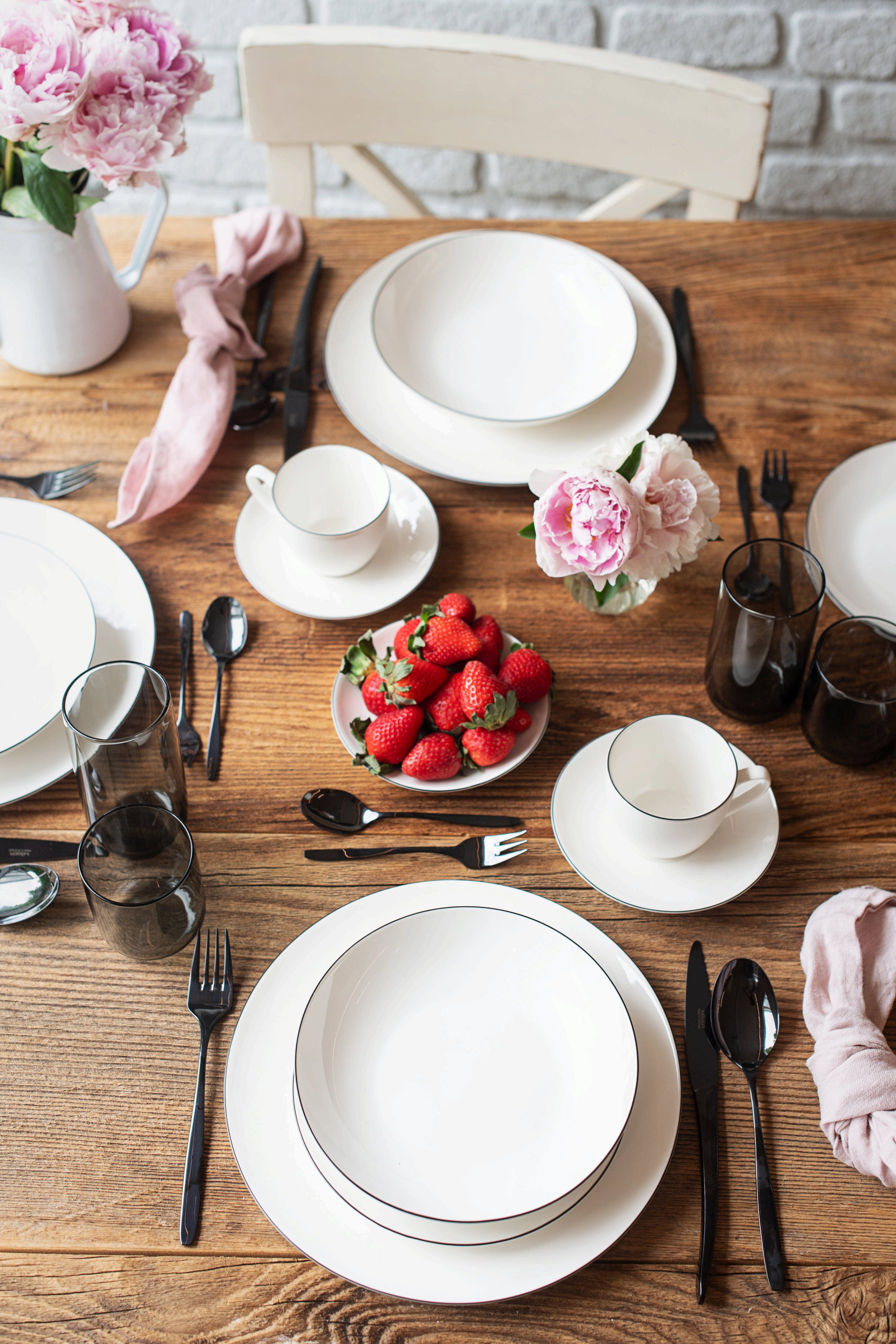 Geniet van je koffiemomenten met dit 18-delige servies, dat klassiek porselein in een modern, puristisch jasje steekt! De serie Felise van Mäser valt op door haar bijzonder filigraan uiterlijk, waarbij het lichte, elegante wit stijlvol wordt geaccentueerd door een subtiele zwarte rand.