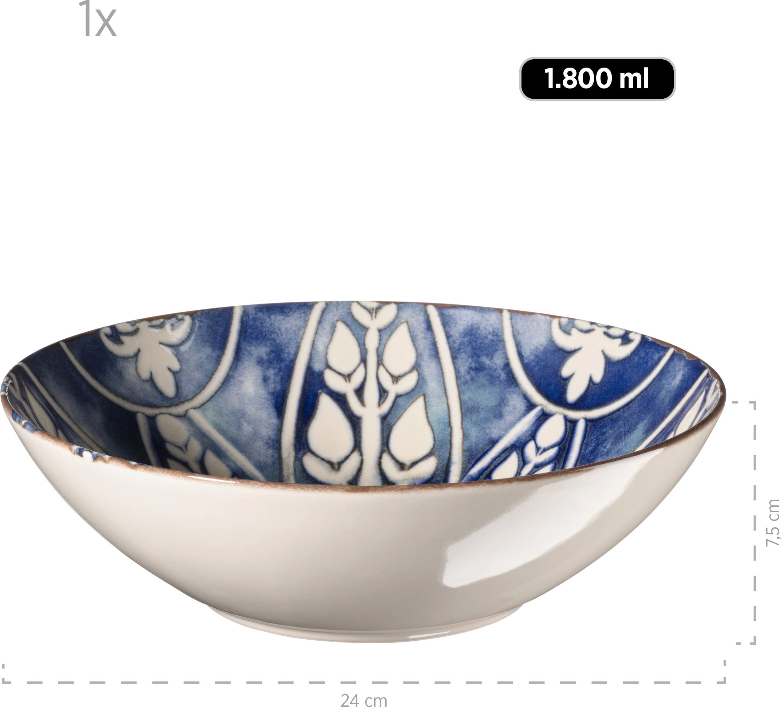 - Serveerschaal: Ø 24 cm, hoogte 7,5 cm, inhoud (randvol): 1800 ml