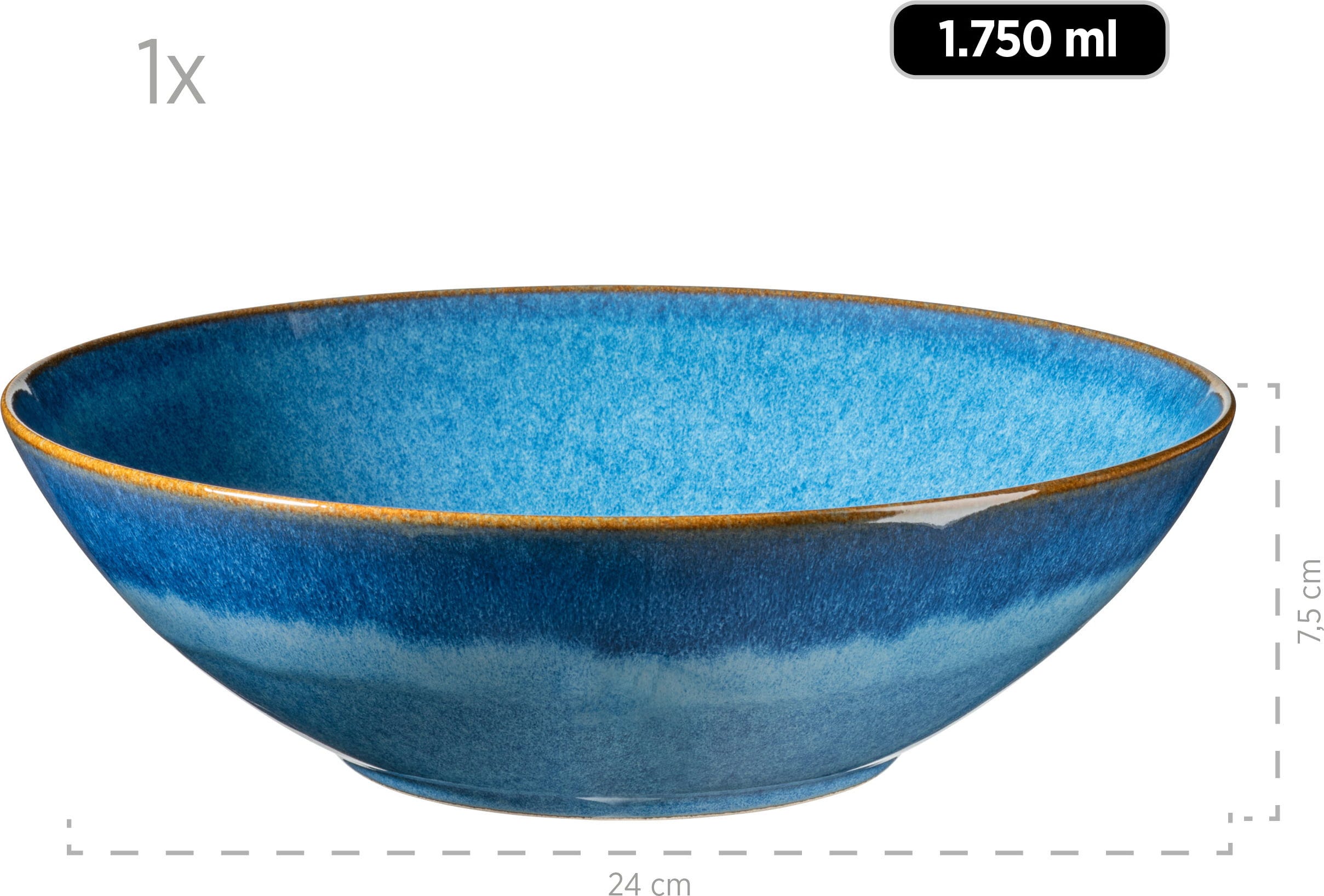 Haal het pure mediterrane levensgevoel direct naar je eettafel met deze 7-delige saladeschaal-set uit de serie Ossia van Mäser. De set van hoogwaardig, robuust aardewerk valt op door een onregelmatig glanzend glazuur, wat elke schaal tot een uniek exemplaar met een charmante vintage-look maakt.