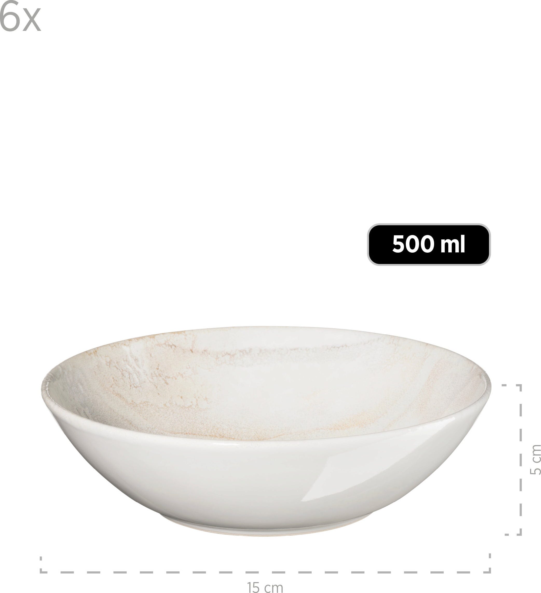 Haal het pure mediterrane levensgevoel direct naar je eettafel met deze 7-delige saladeschaal-set uit de serie Ossia van Mäser. De set van hoogwaardig, robuust aardewerk valt op door een onregelmatig glanzend glazuur, wat elke schaal tot een uniek exemplaar met een charmante vintage-look maakt.