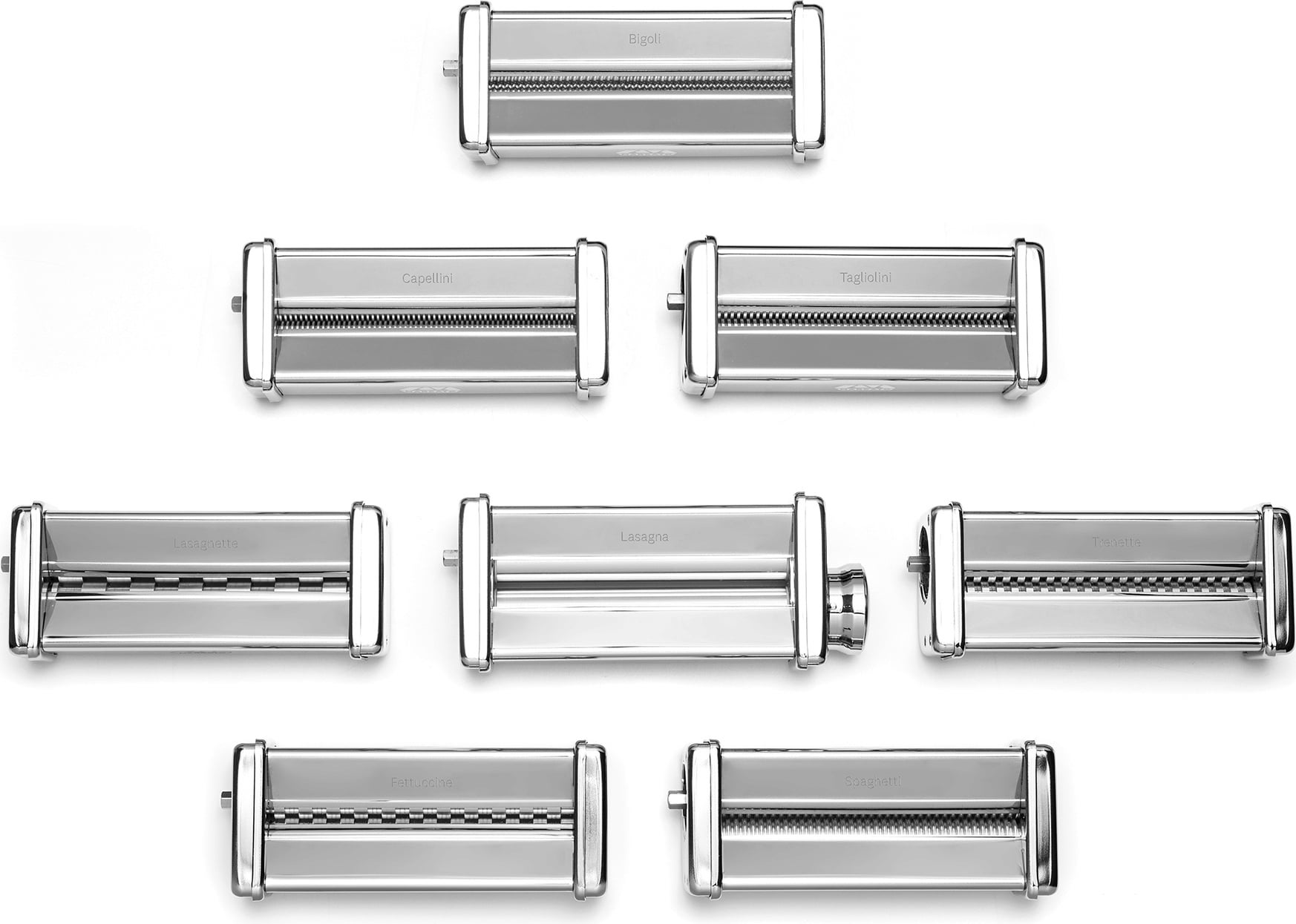 De aluminium rollen hebben een licht geruwd oppervlak, waardoor de pasta licht poreus is waardoor de bereide sauzen veel beter hechten.