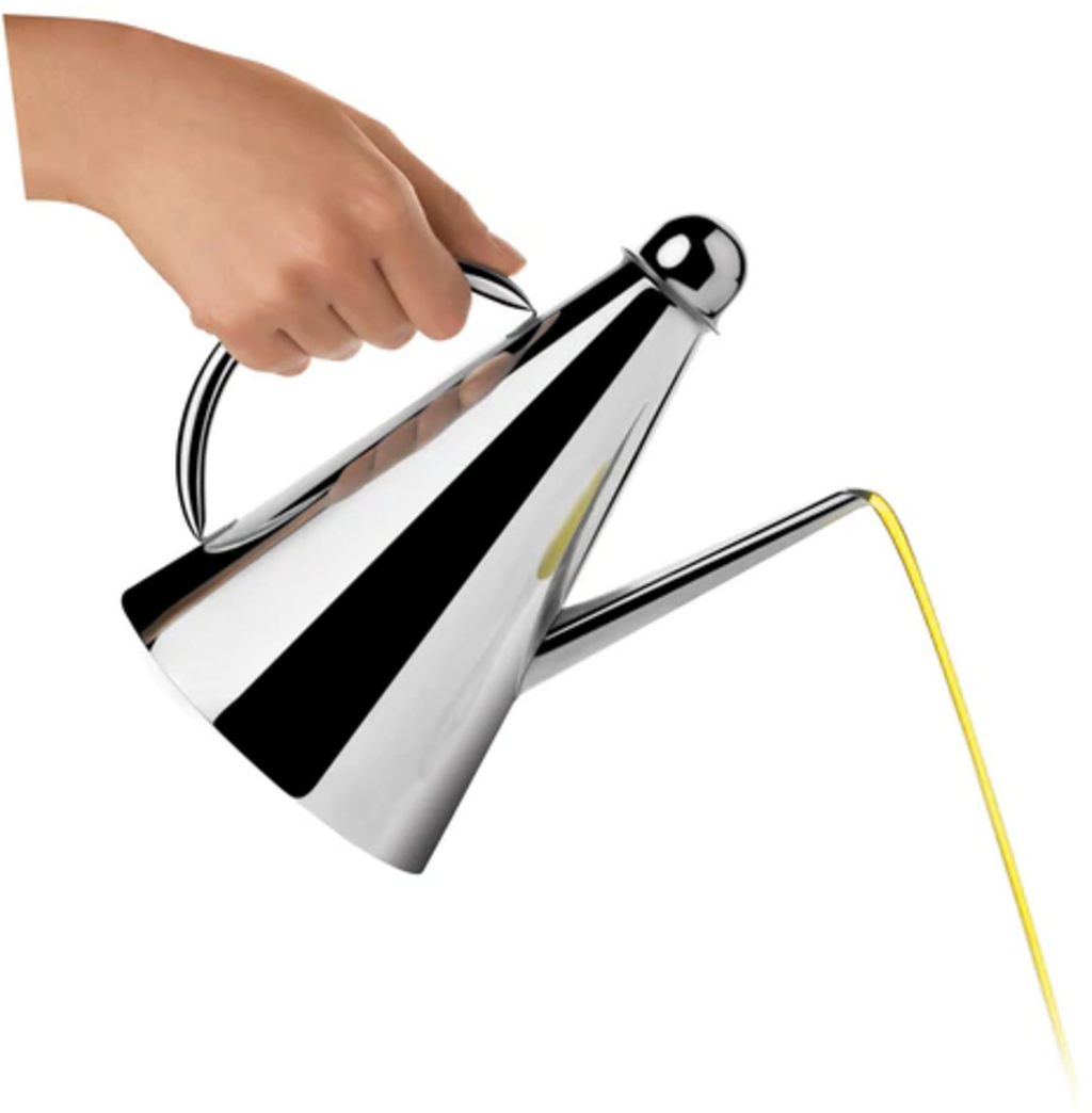 Een oliekannetje heeft het grote voordeel dat het de "knoeien" minimaliseert. Met een fles is het bijna onmogelijk om de laatste druppel niet op het tafelkleed te verliezen - vandaar de verplichte servetring rond de hals van de fles. Met deze elegante en onderhoudsvriendelijke roestvrijstalen kan is dat niet langer nodig. En je kunt hem gewoon op tafel zetten voor zelfbediening.