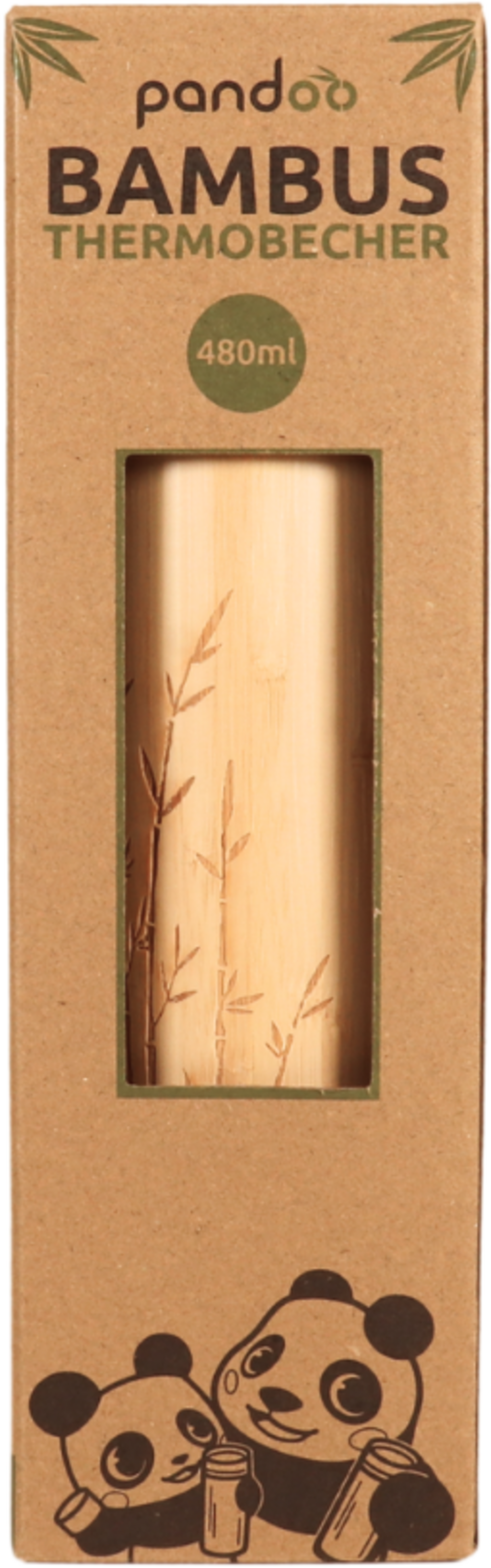 Pandoo Thermosfles van Bamboe en Roestvrij Staal, 480 ml