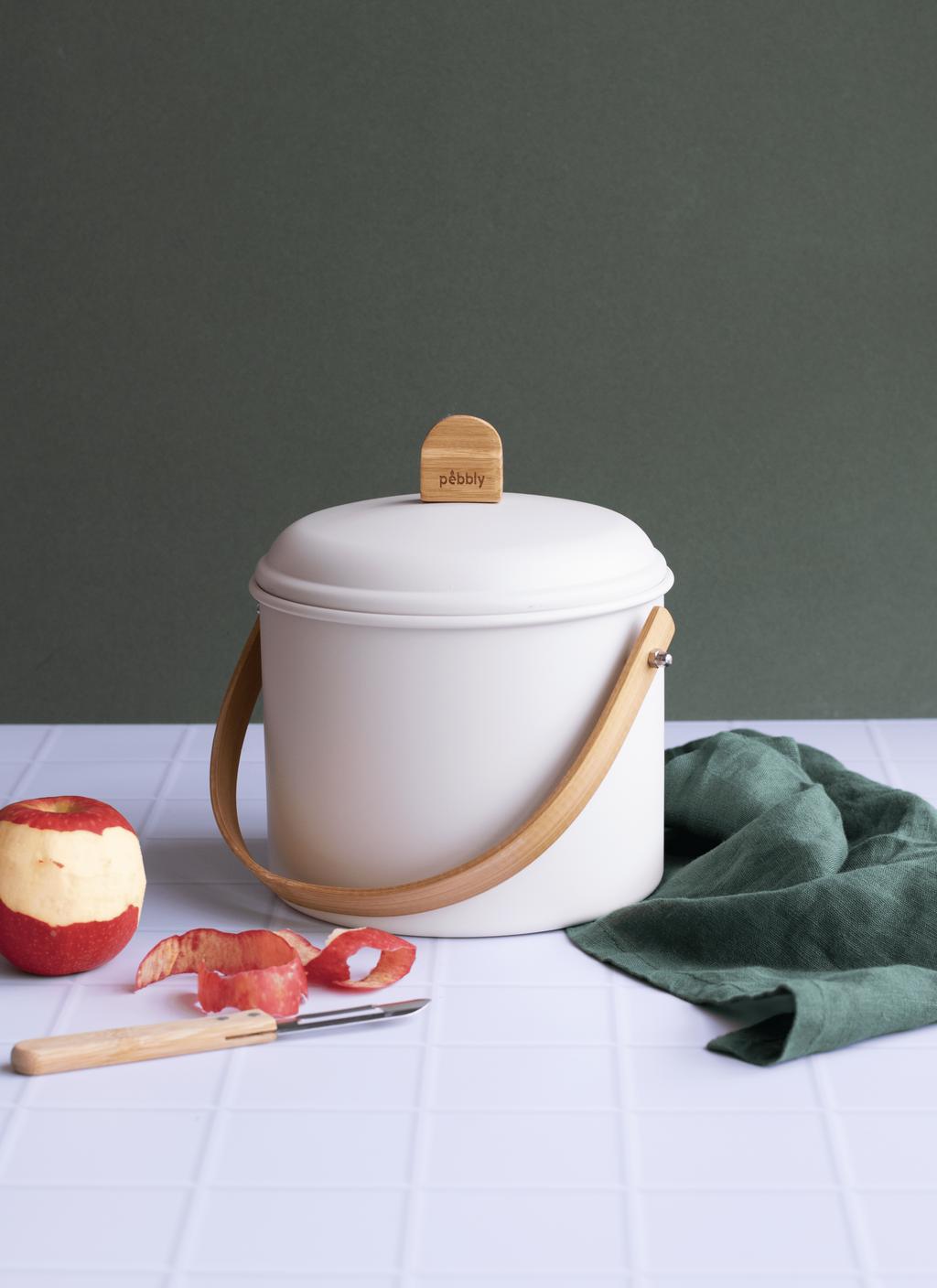 De compostbak is gemaakt van crèmekleurig metaal en in de deksel zit een filter. De robuuste handgreep is gemaakt van bamboe en rondt de moderne en elegante uitstraling optimaal af, zodat de compostbak perfect in je keuken past.