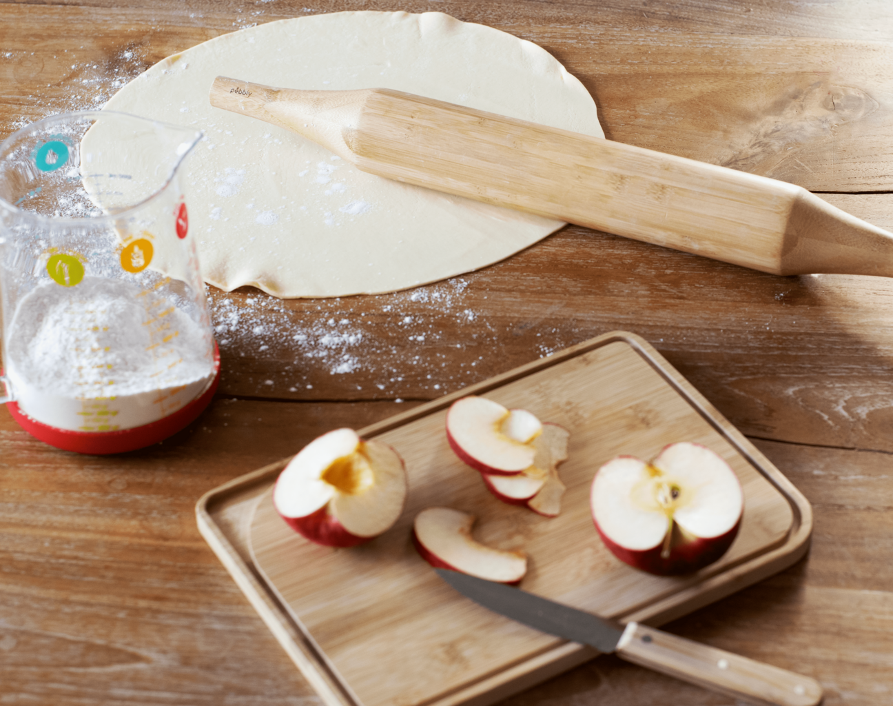 De deegroller loopt taps toe naar de uiteinden, waardoor hij heel gemakkelijk te gebruiken is - dit betekent dat je moeiteloos pizza-, koekjes- en zanddeeg maakt!
