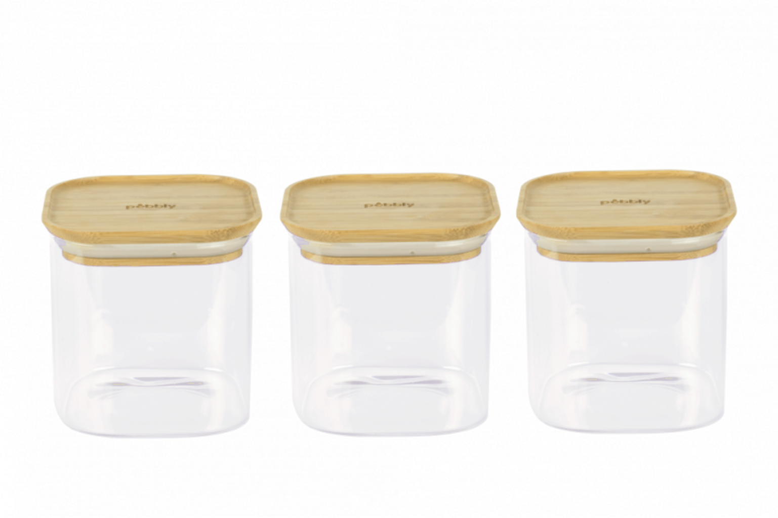 Pebbly Glazen Voorraadpotten met Bamboe Deksels in een Set van 3, 800 ml Elk