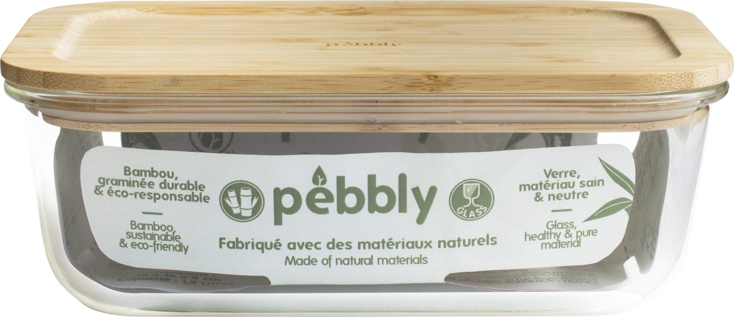 Pebbly Rechthoekig Vershoudbakje Glas/Bamboe, 1800 ml