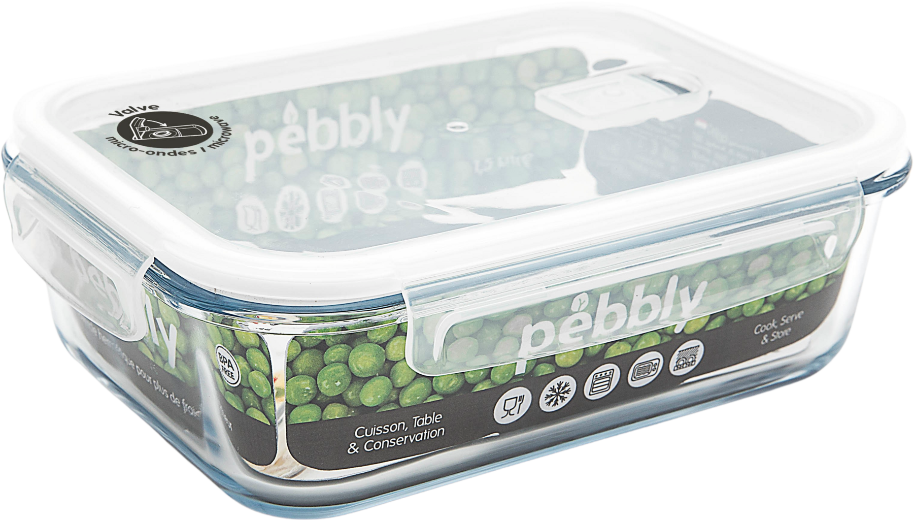 Pebbly Rechthoekig Vershoudbakje - Glas/PP, 1500 ml