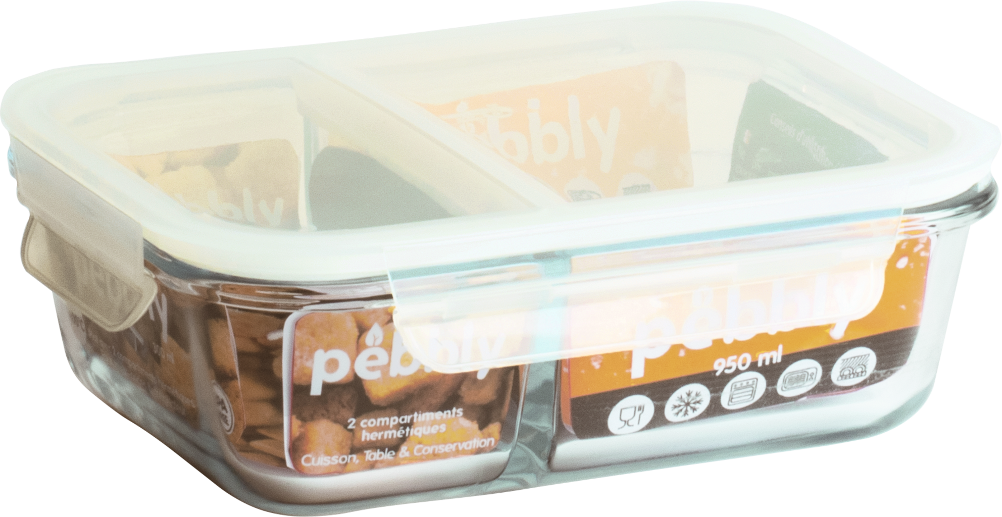 Pebbly Rechthoekige Vershoudbakje met 2 Vakken, 950 ml