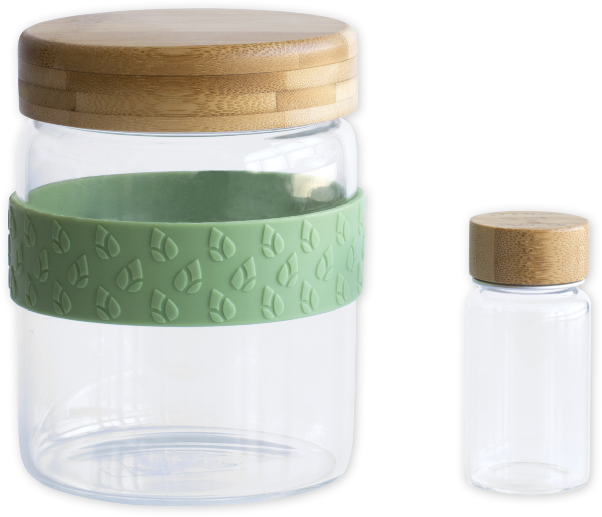 Materiaal: Siliconen, Bamboe, Borosilicaatglas