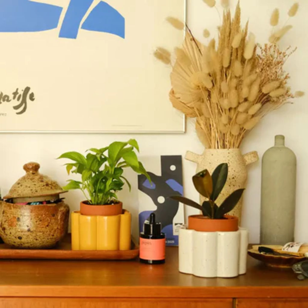 Paula is de bloempot die er niet alleen mooi uitziet, maar het ook gemakkelijk maakt om bloemen te houden. Hij is gemaakt van microporeus keramiek, zowel aan de binnenkant als aan de buitenkant, en brengt het water tussen de buitenste en binnenste pot voorzichtig over in de grond. Je kunt er zeker van zijn dat je kamerplant goed water krijgt terwijl je met je voeten omhoog kunt zitten en toekijken hoe hij groeit.