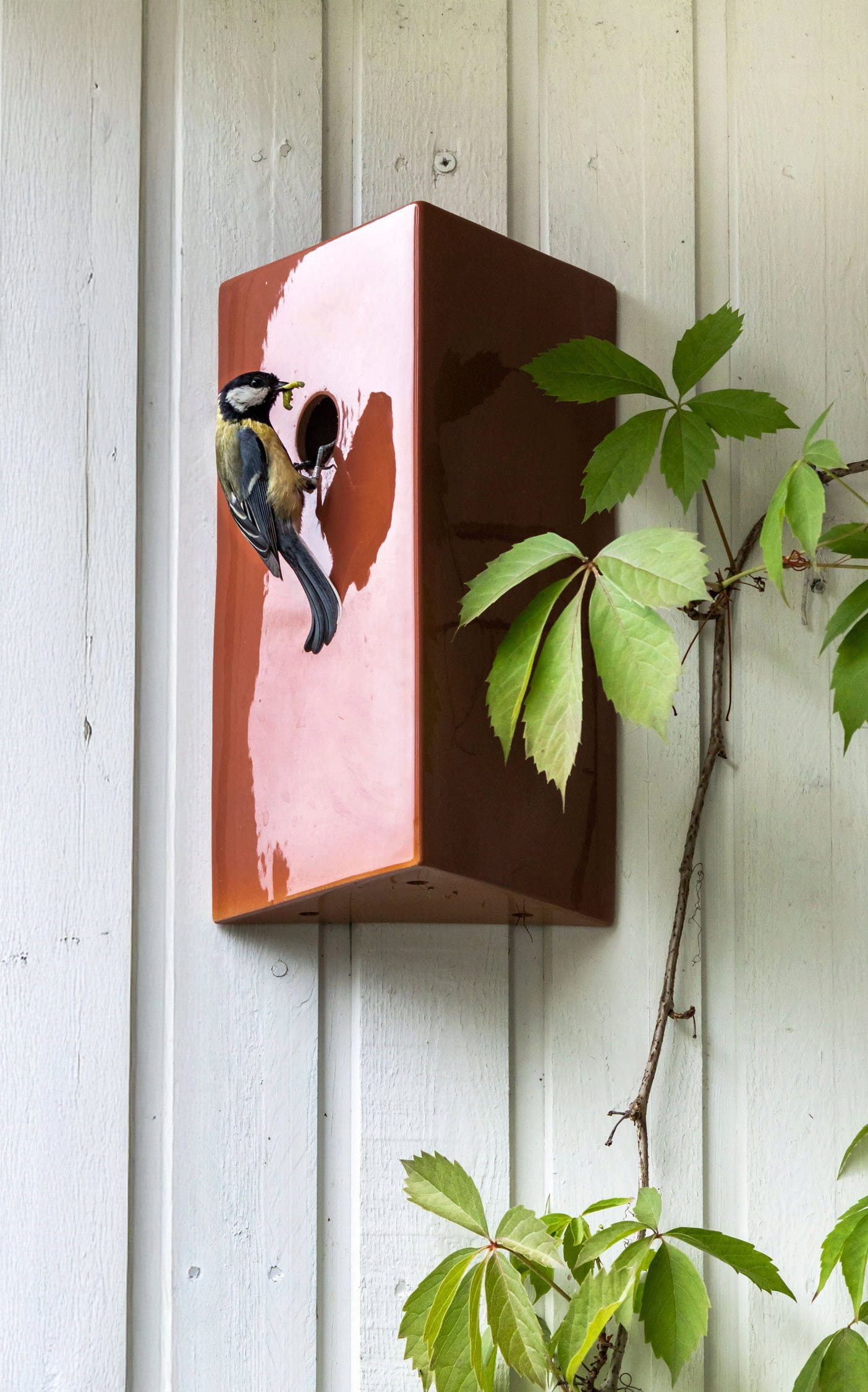 Keramisch vogelhuisje voor aan de muur