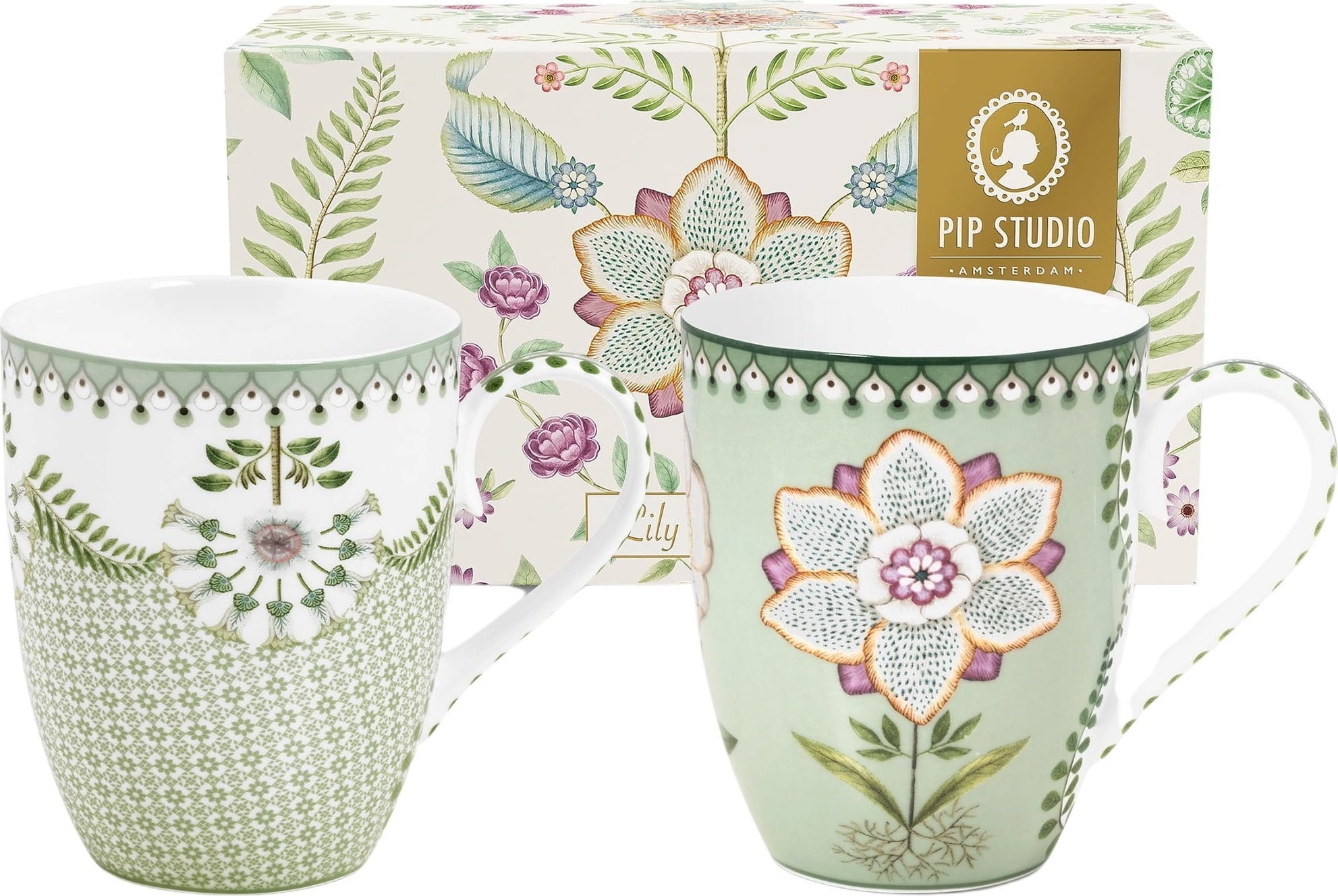 Pip Studio Beker Groot - Lily & Lotus, Set van 2, Lichtgroen (350 ml)