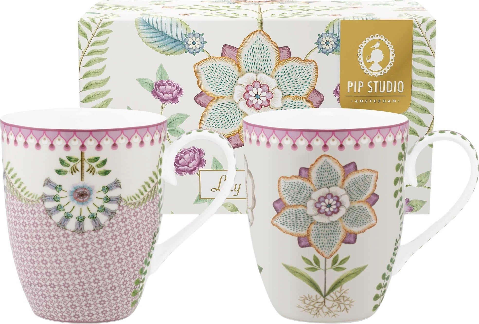 Geniet in stijl van je favoriete drankjes met deze prachtige set van twee grote bekers uit de Lily & Lotus-collectie van Pip Studio! De bekers zijn versierd met fantasievolle lelies, lotusbladeren en paardenbloemen in delicate pastelkleuren, waardoor een modern en sierlijk ontwerp ontstaat. Elke mok heeft een inhoud van 350 ml, perfect voor koffie of thee!