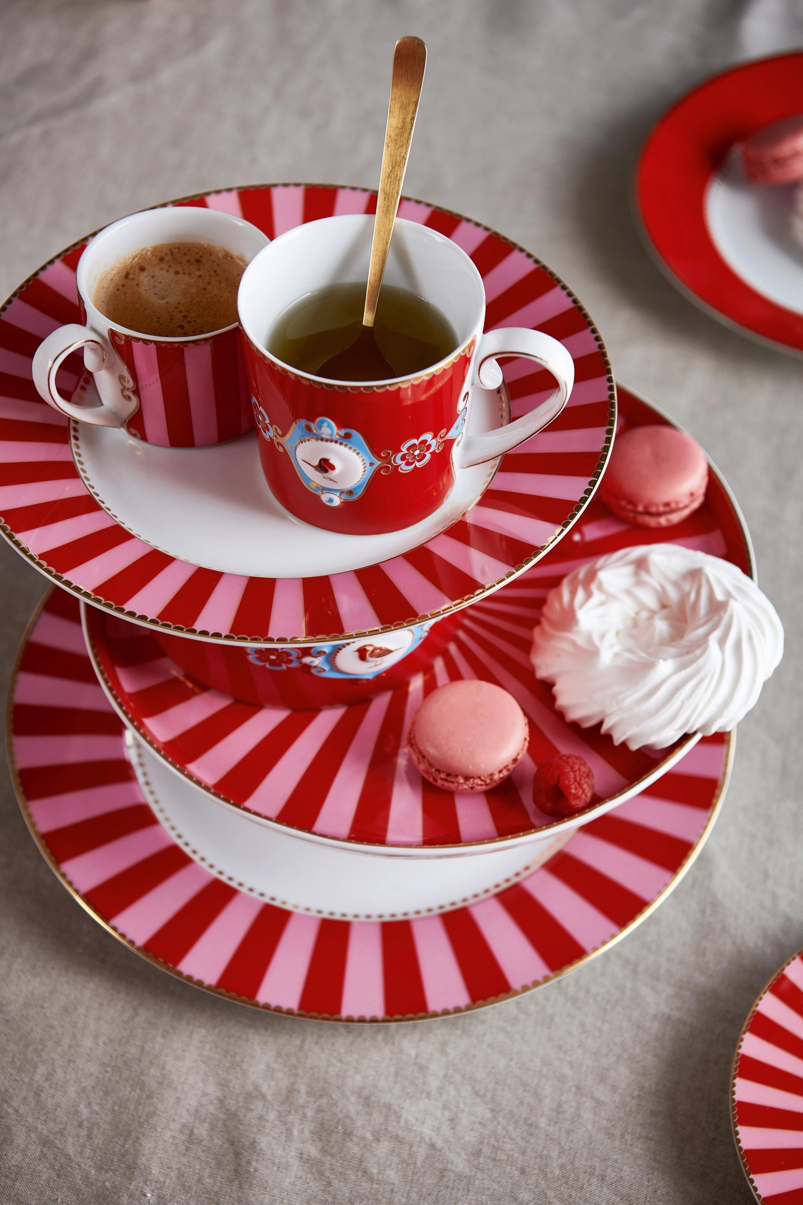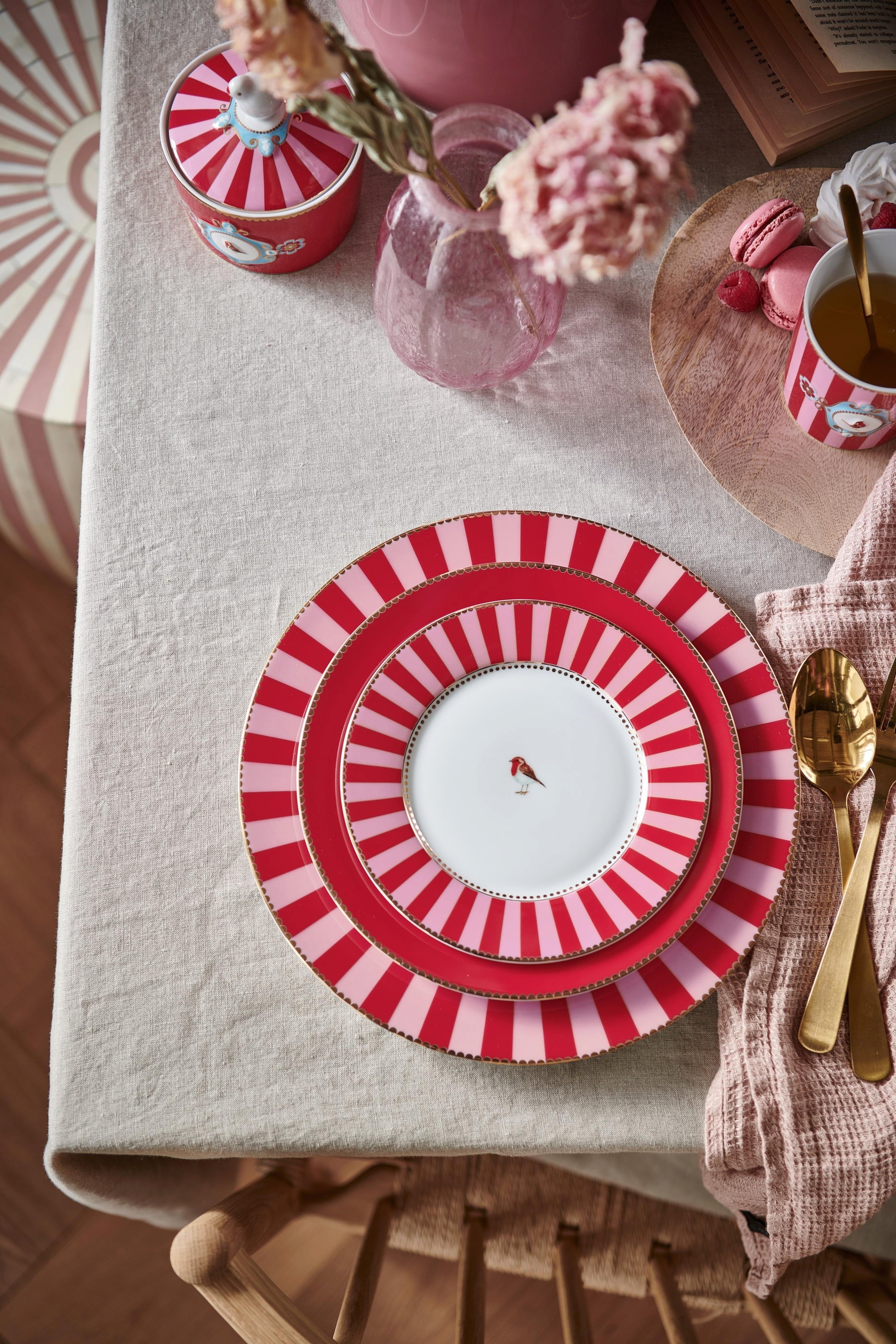 Pip Studio Bord - Love Birds Gestreept Rood/Roze, 26,5 cm